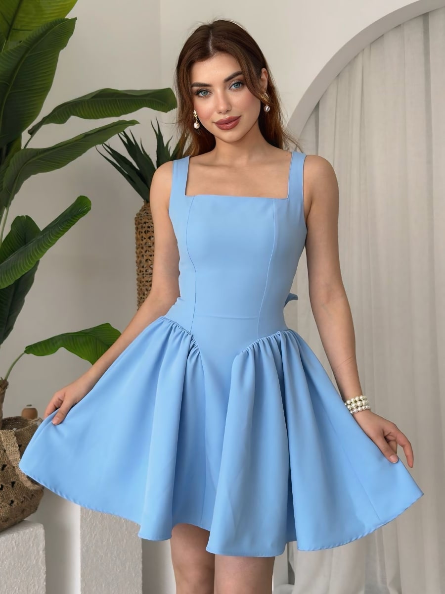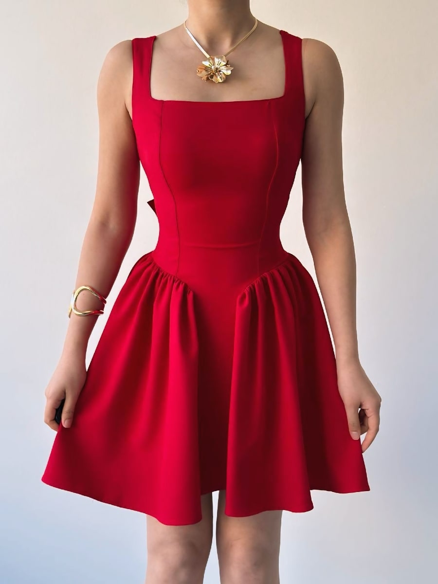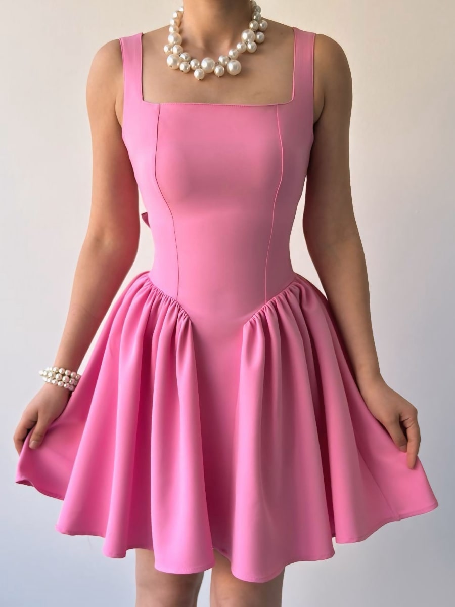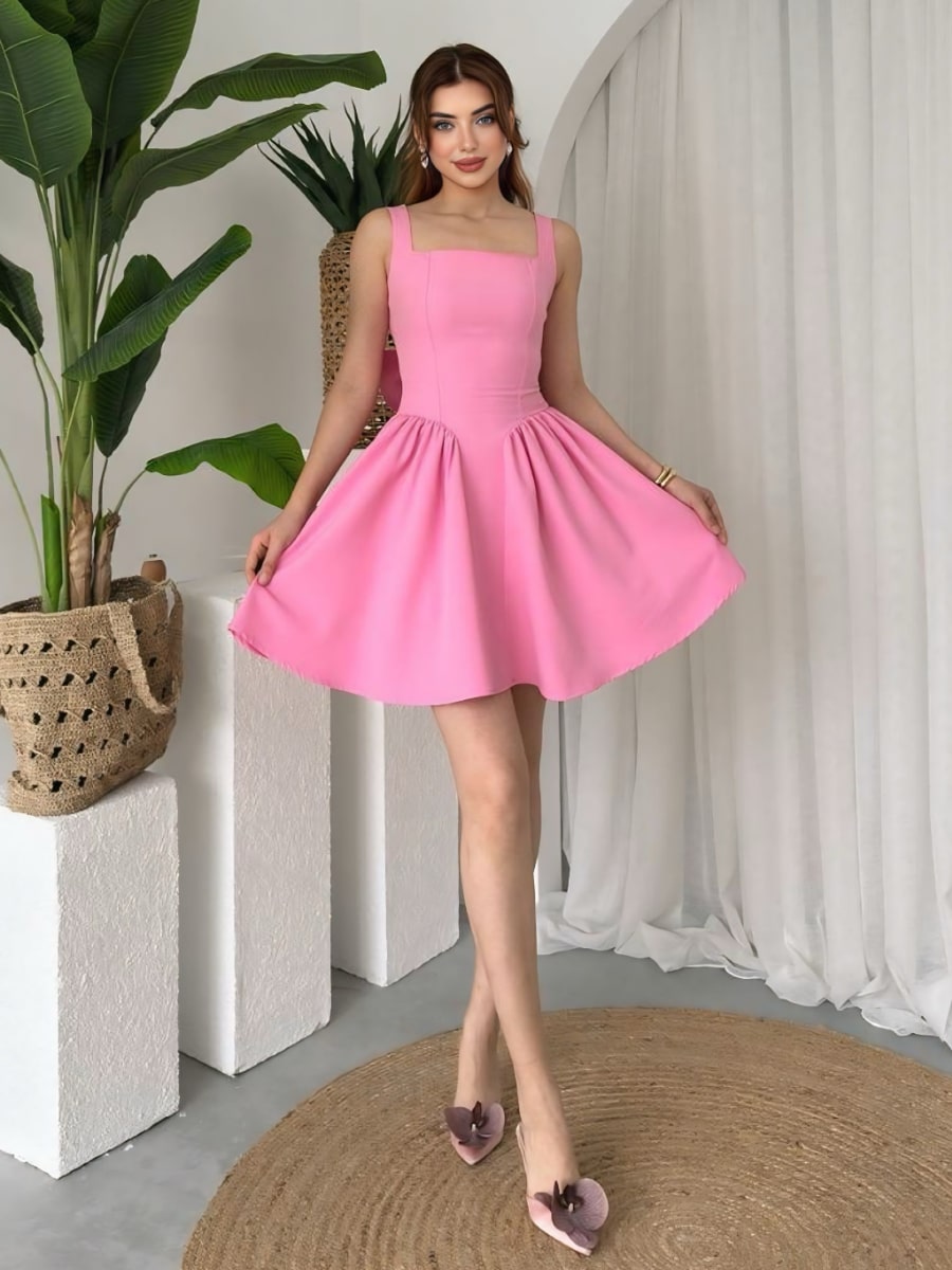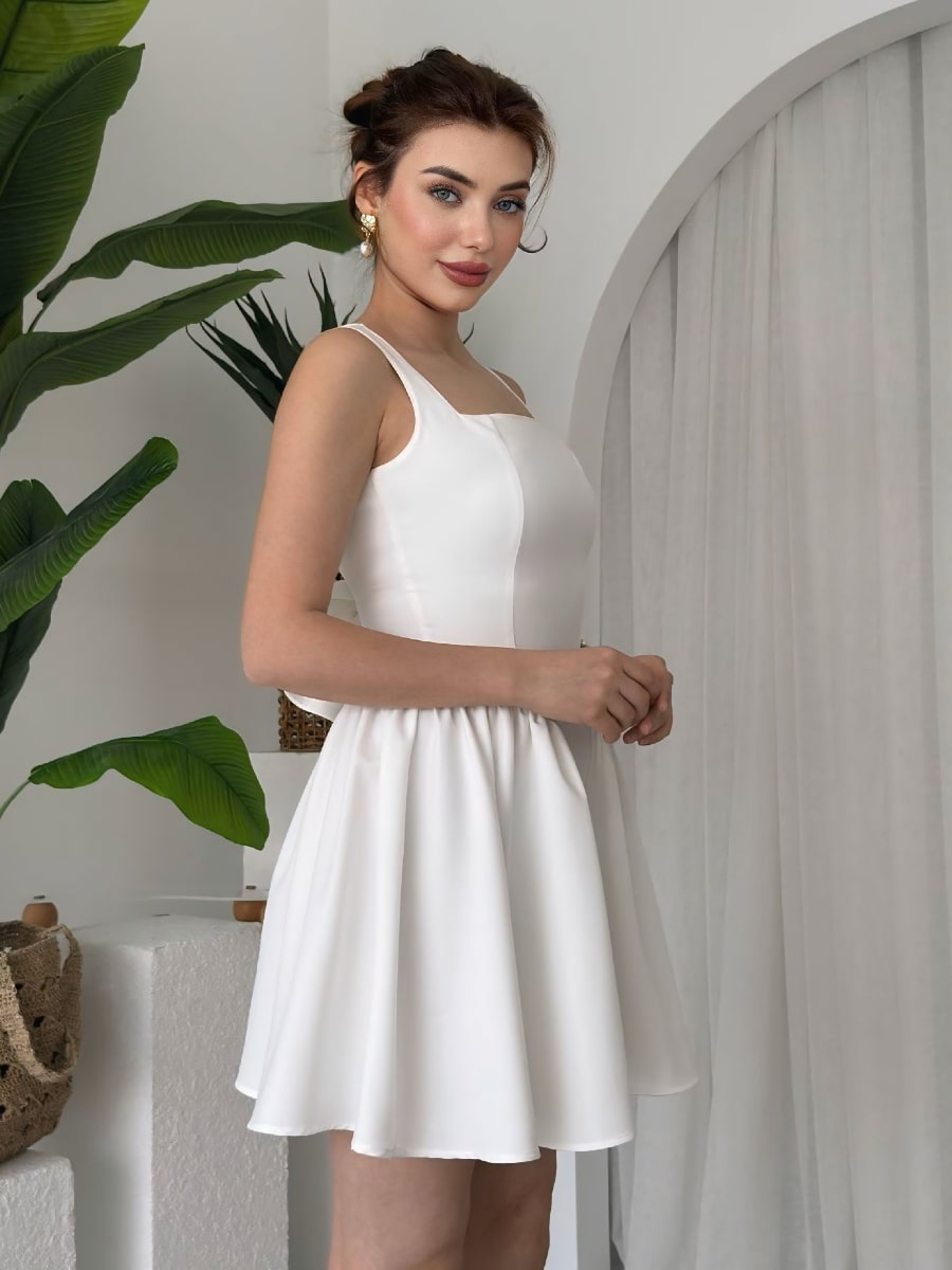 Satin Draped Neckline 3D Floral Decor Cami Dress