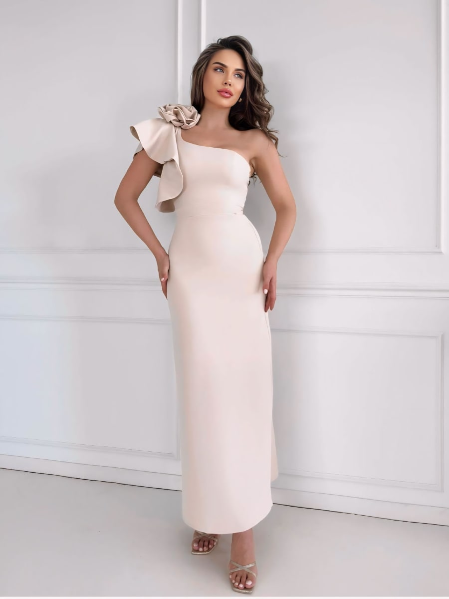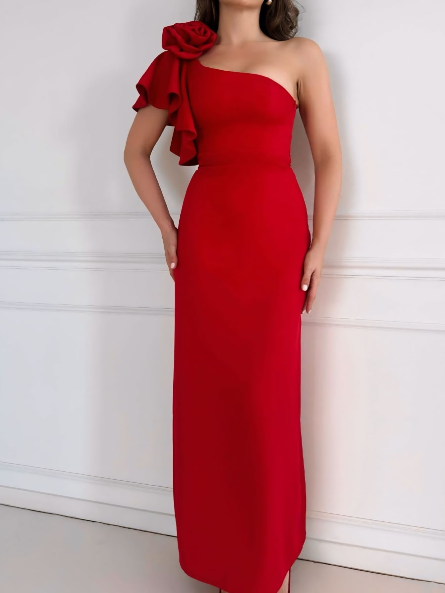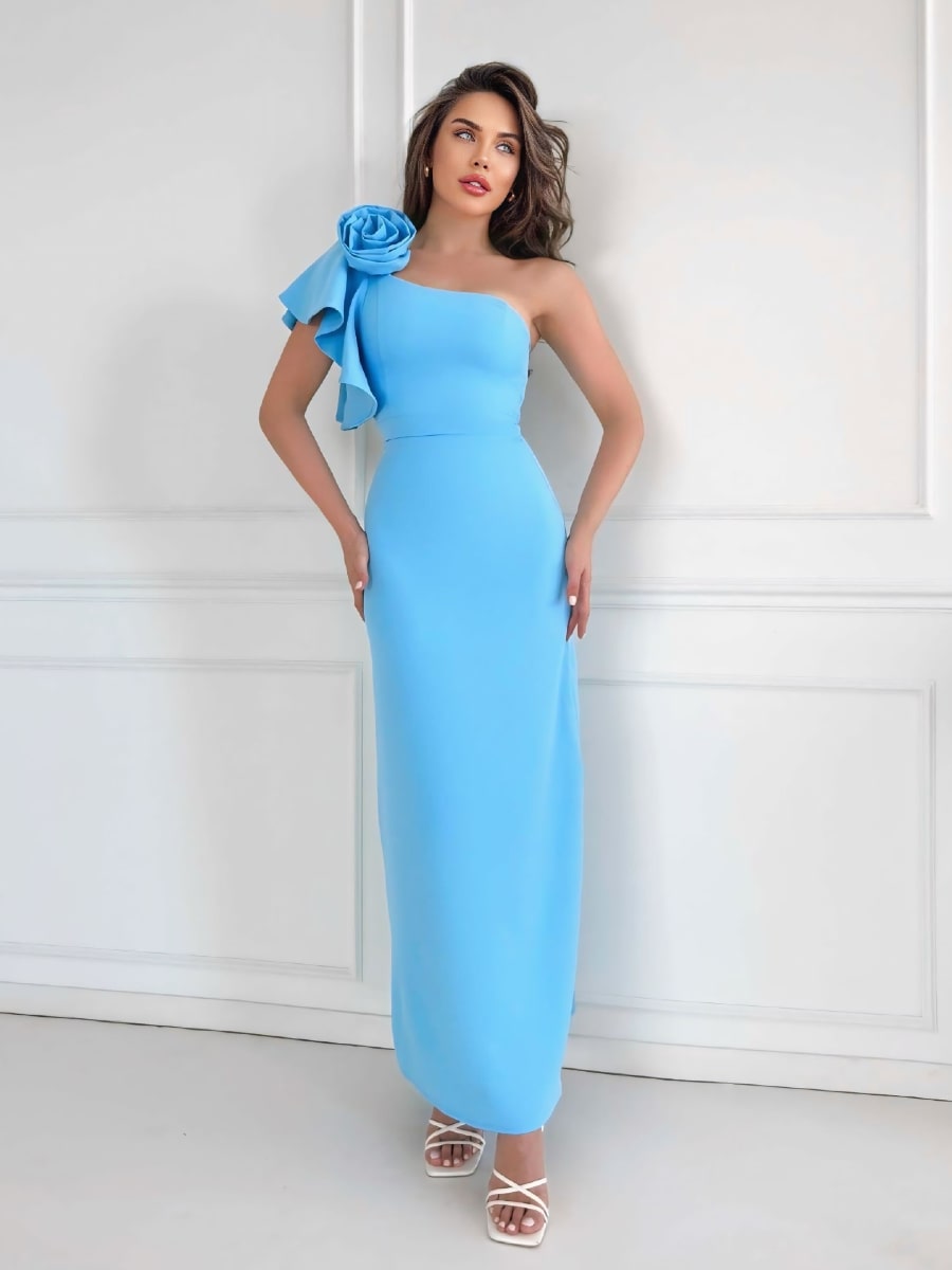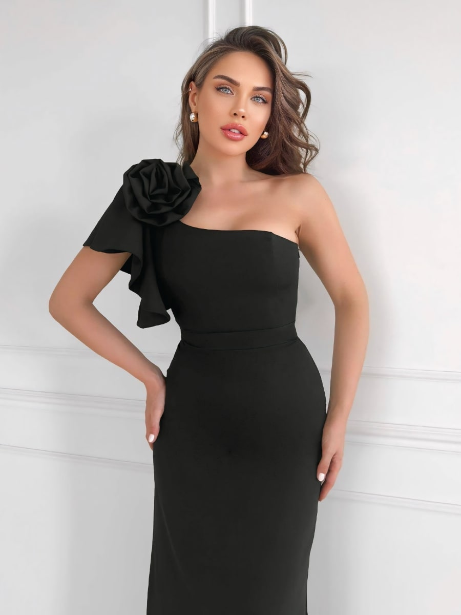 3D Floral Decor Bandeau Bodycon Elegant Dress