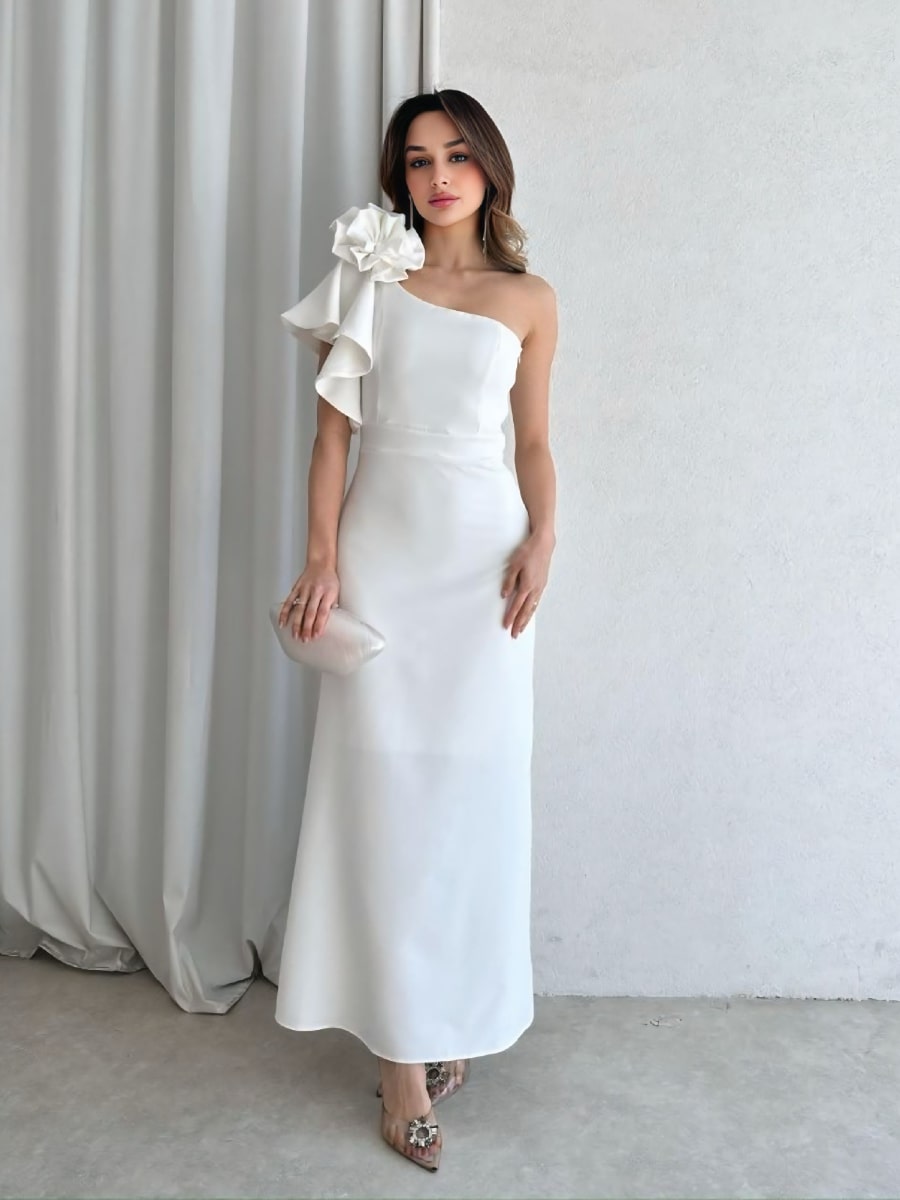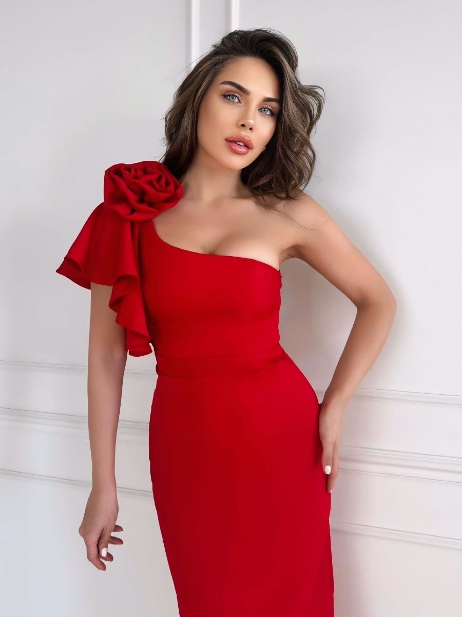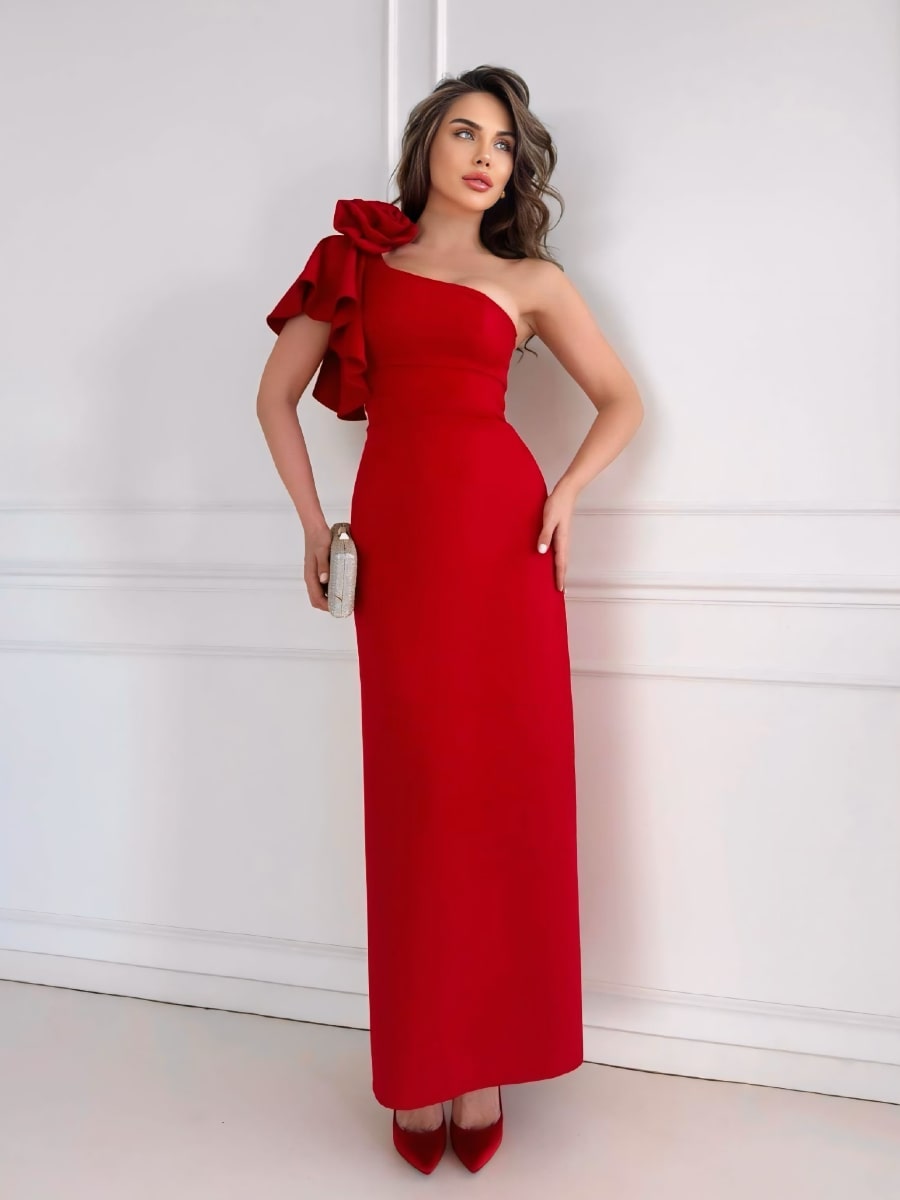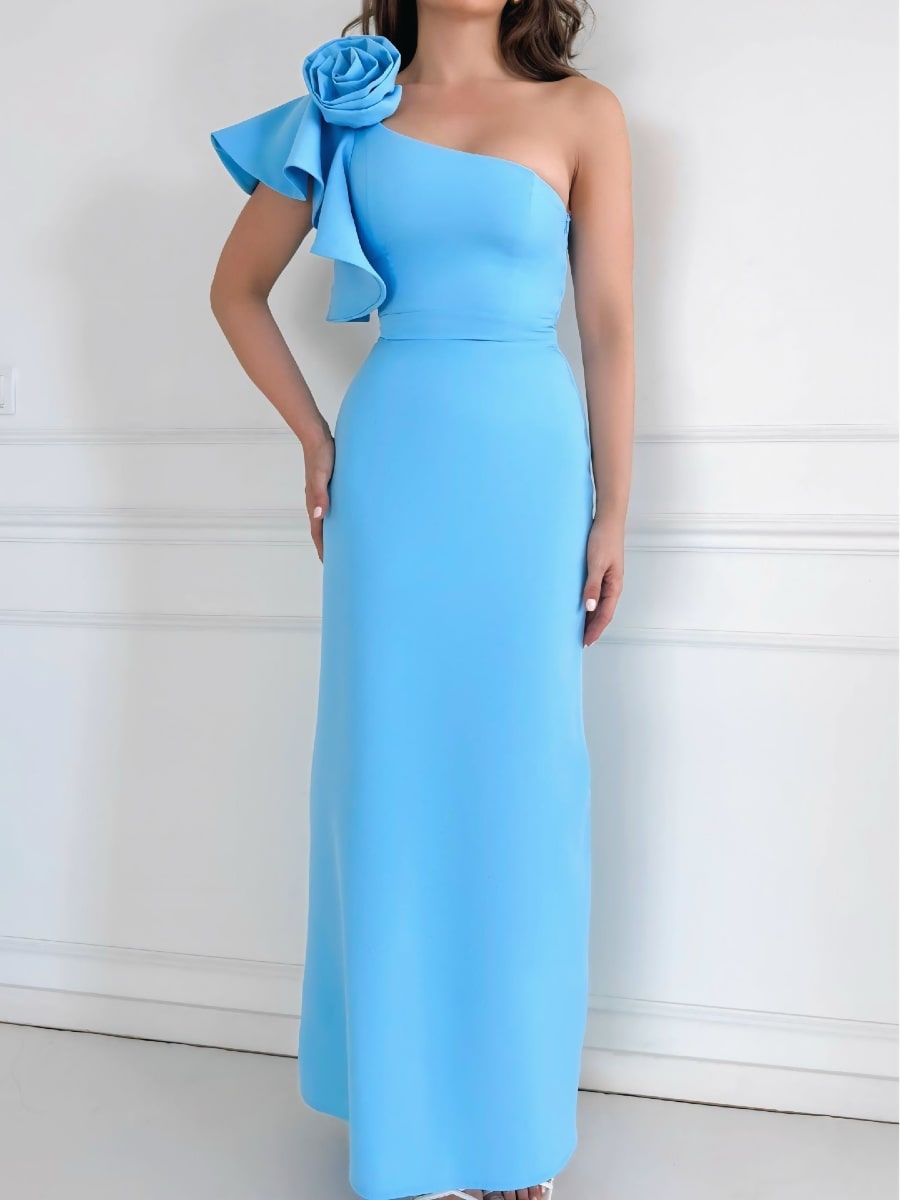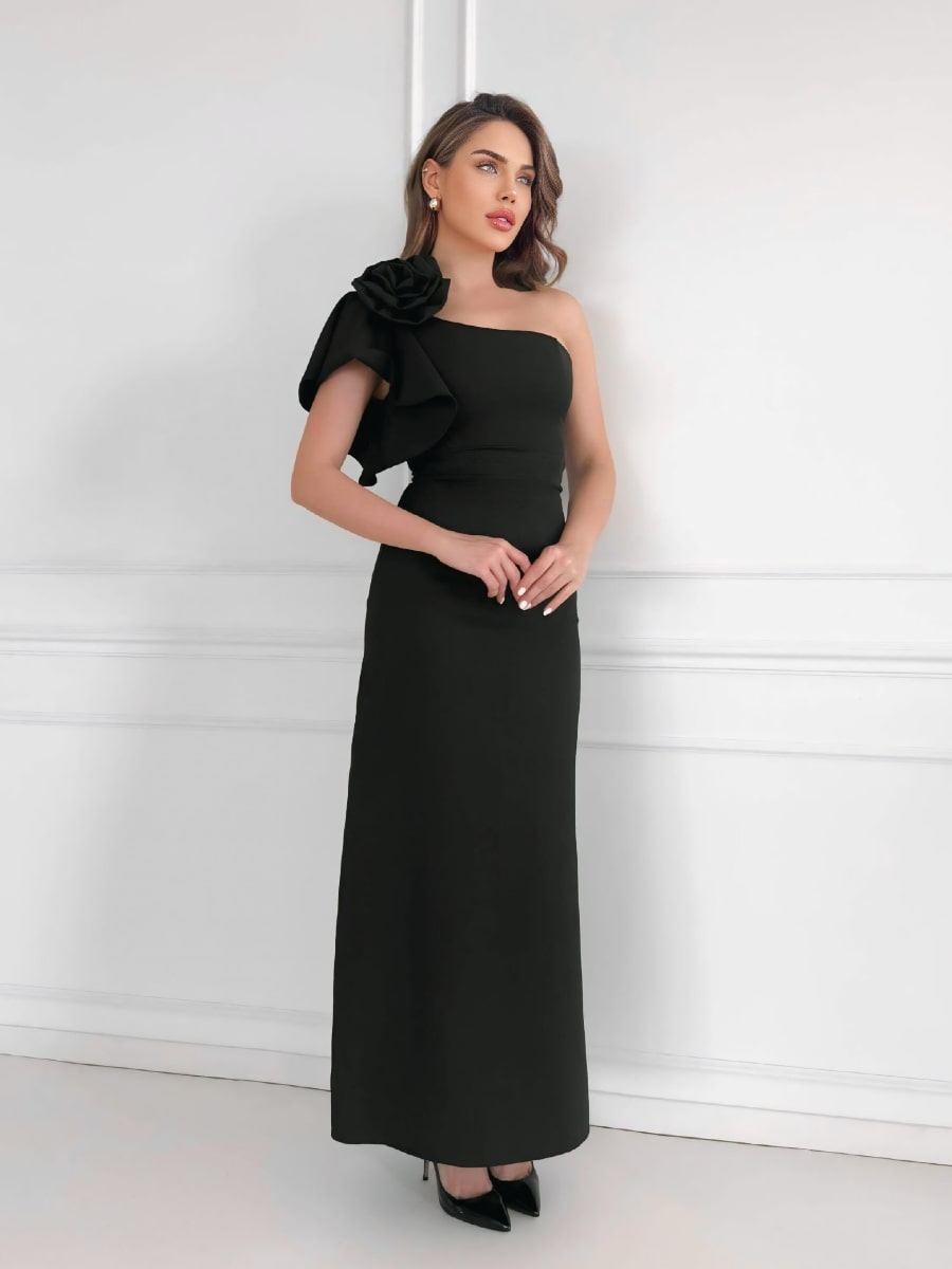 3D Floral Decor Bandeau Bodycon Elegant Dress