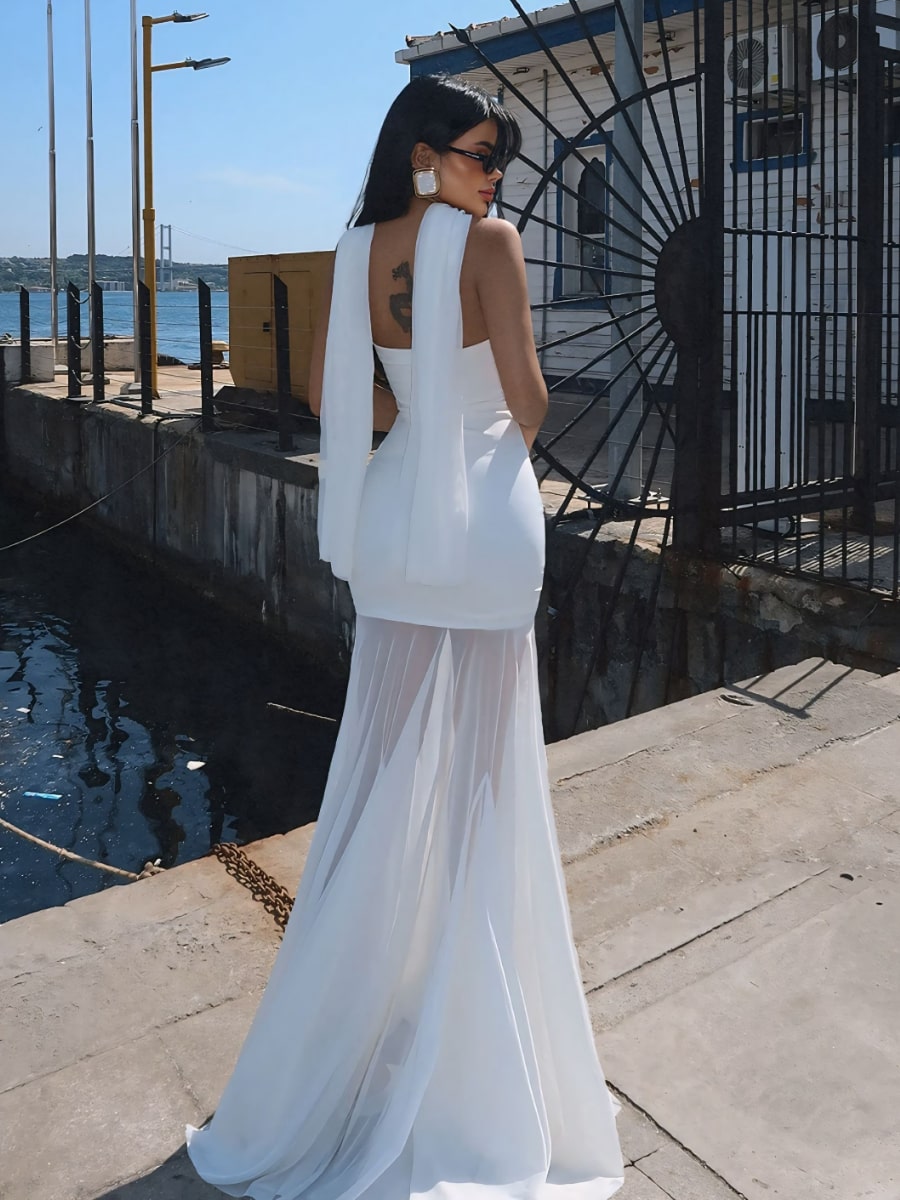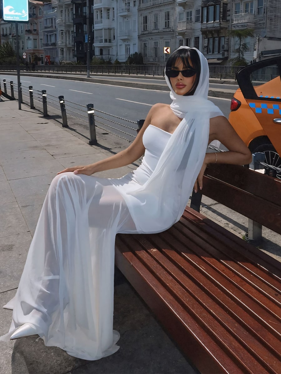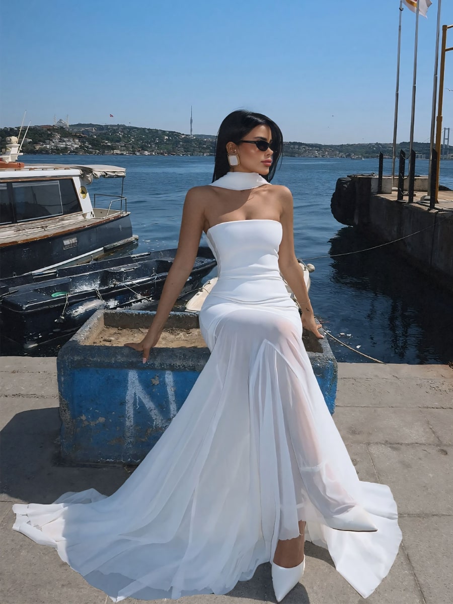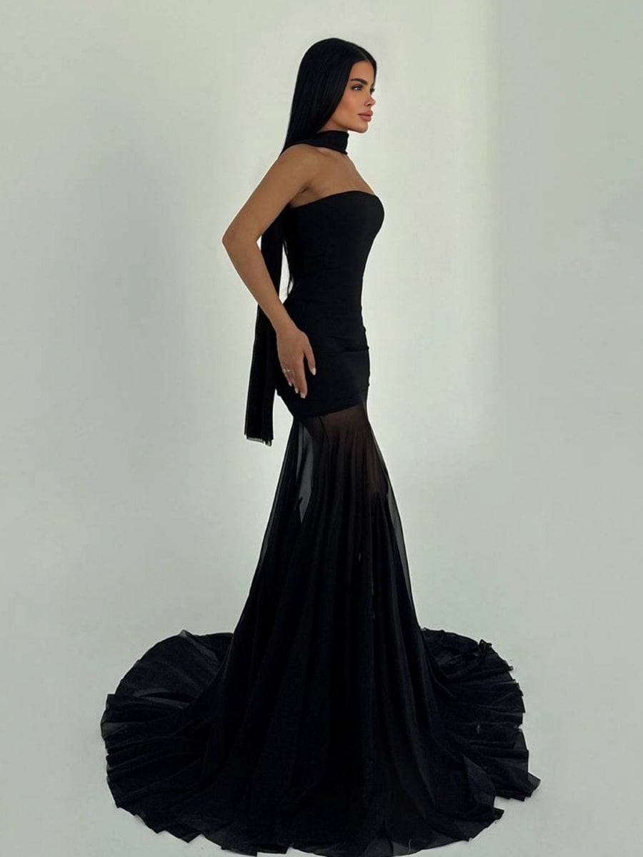 3D Floral Decor Bandeau Bodycon Elegant Dress
