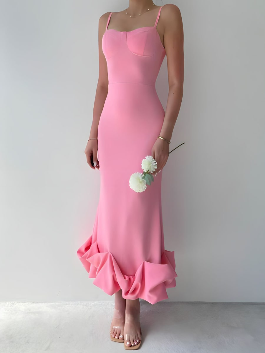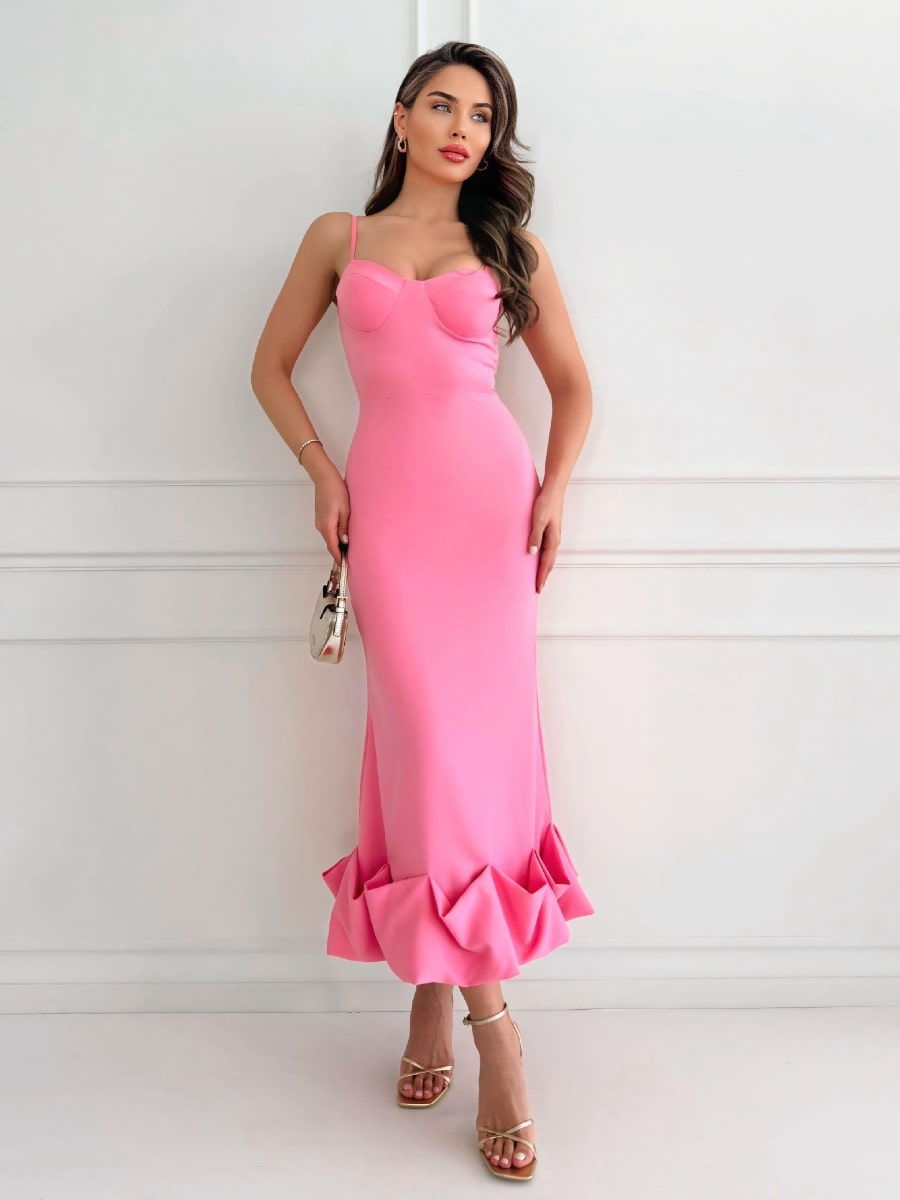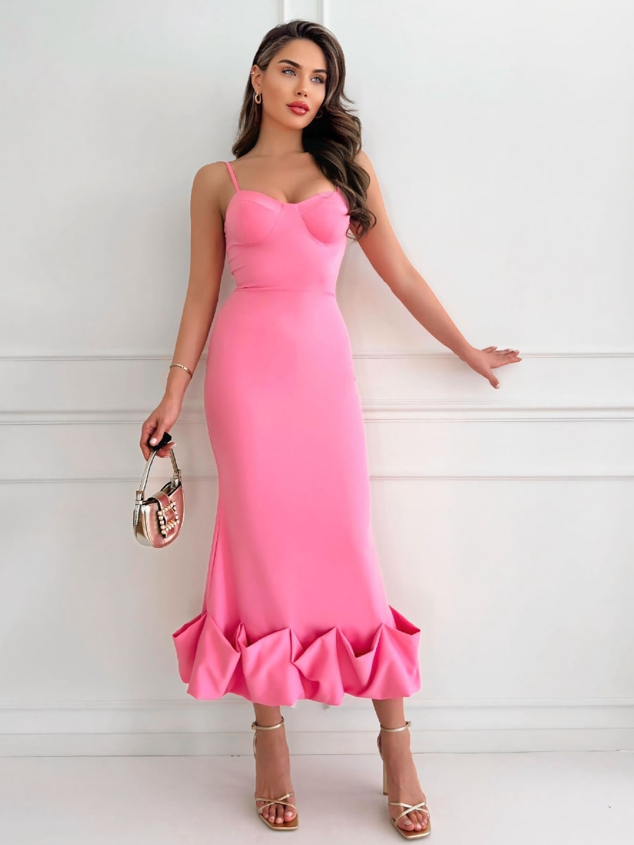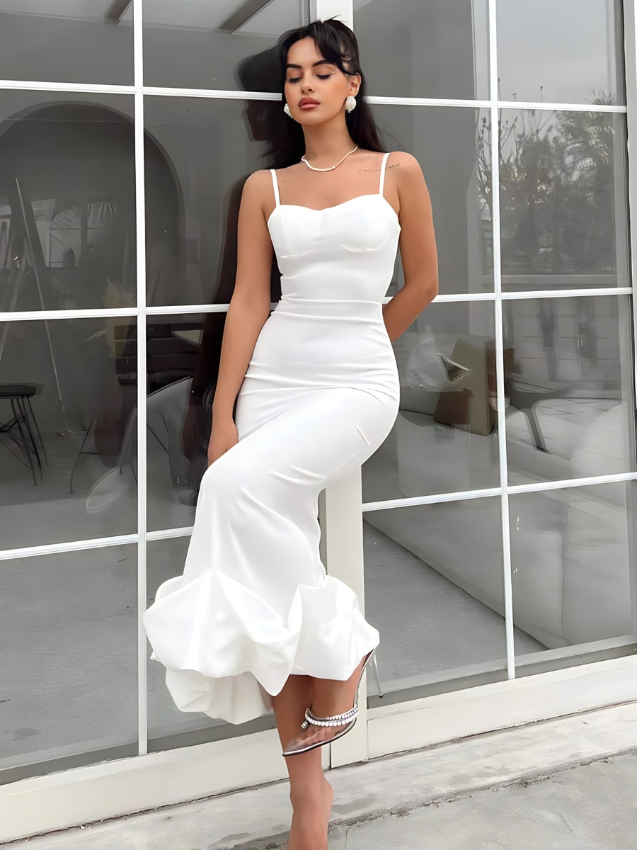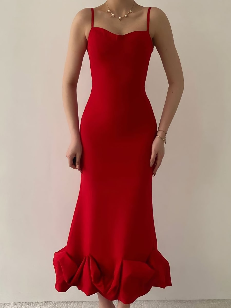 Solid Ruffle Hem Bodycon Cami Dress
