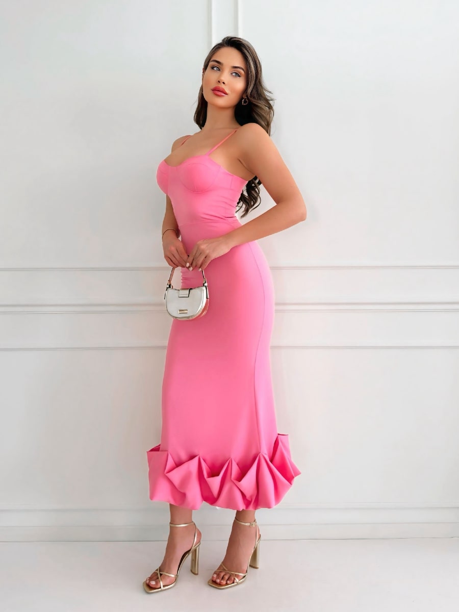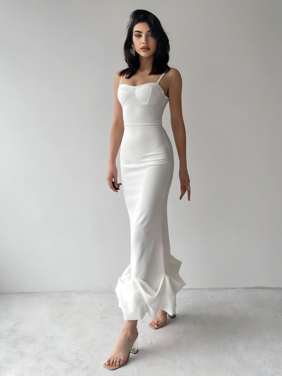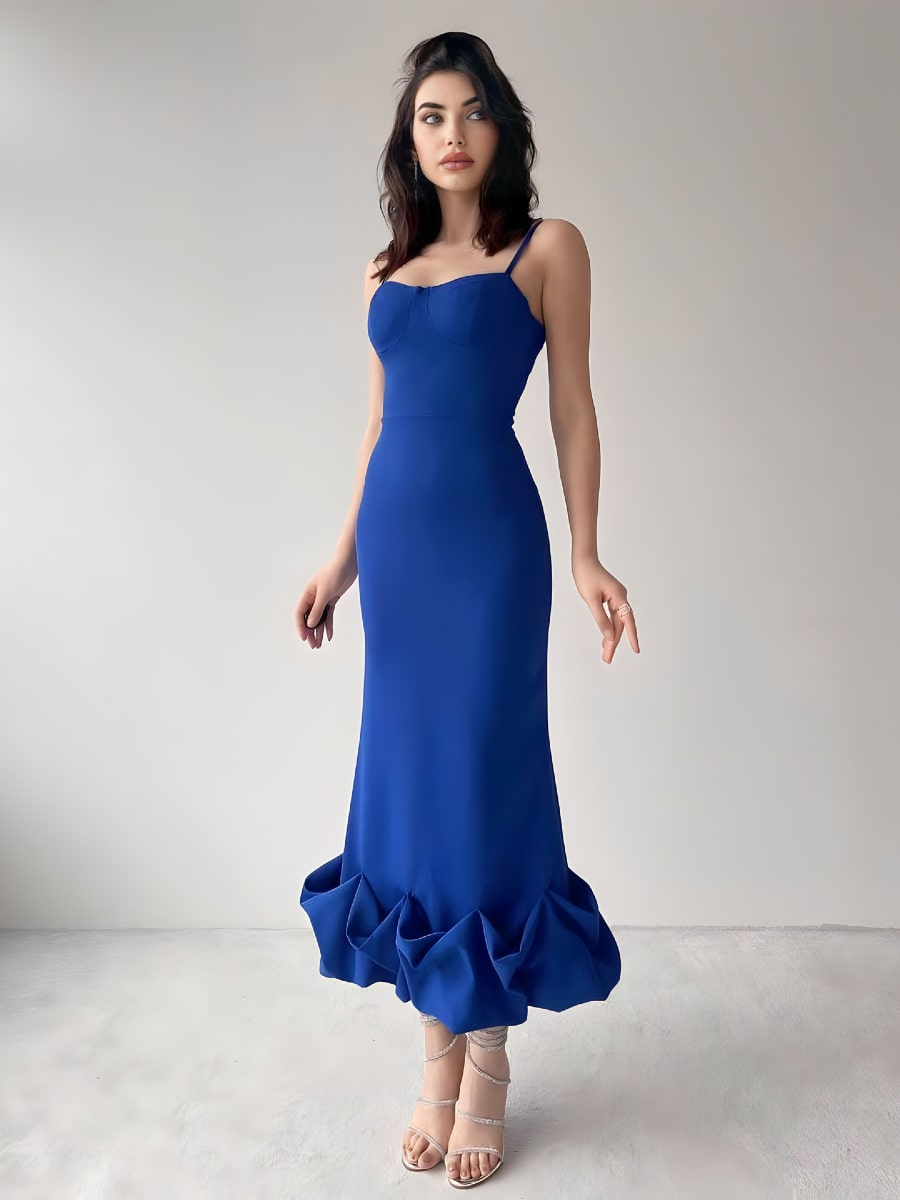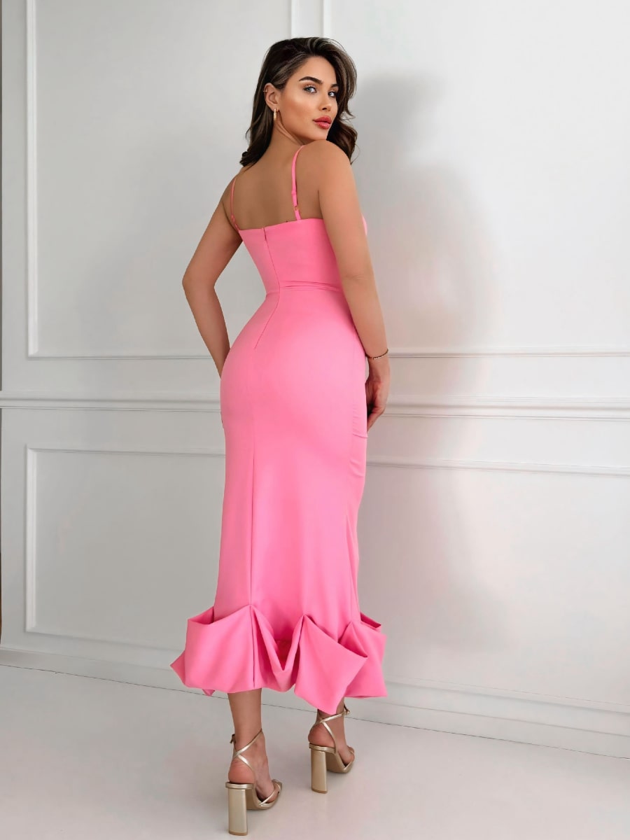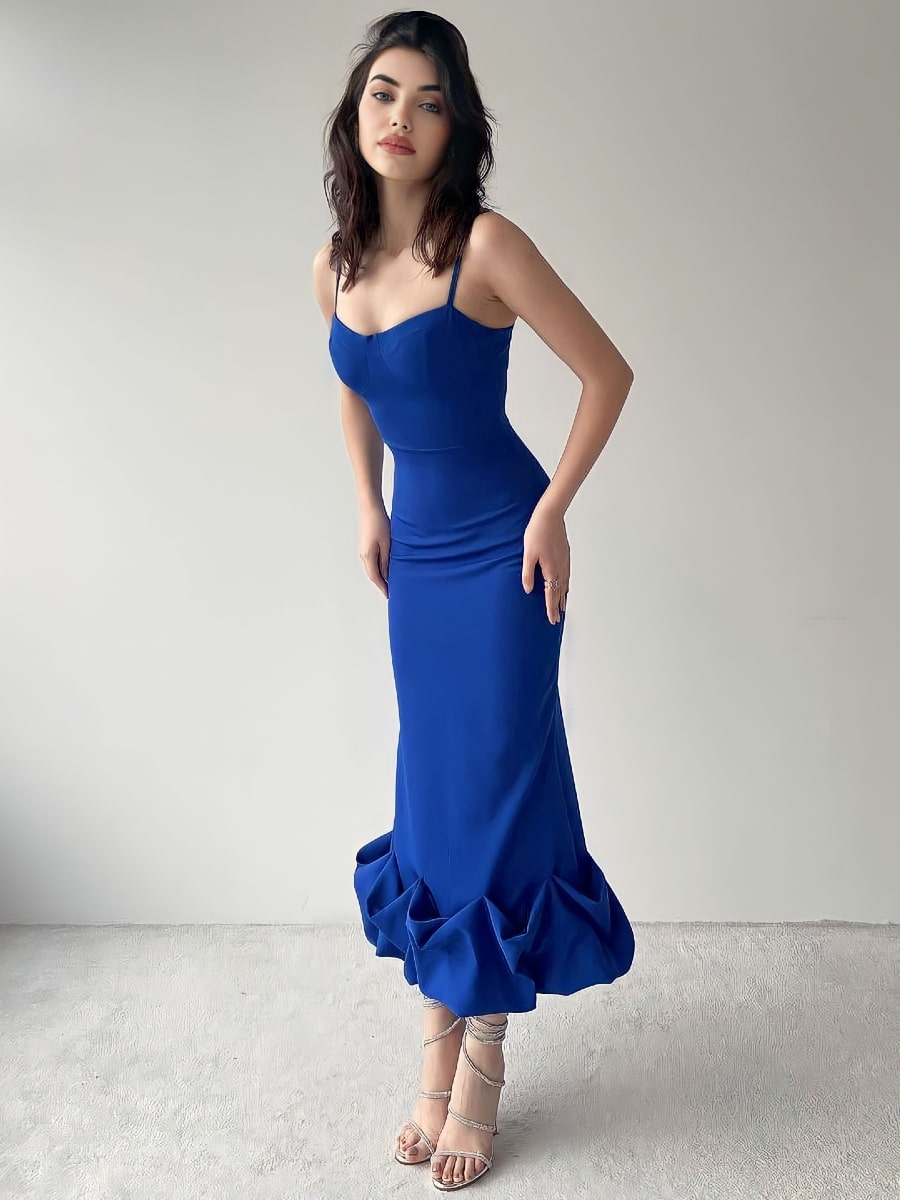 Solid Ruffle Hem Bodycon Cami Dress