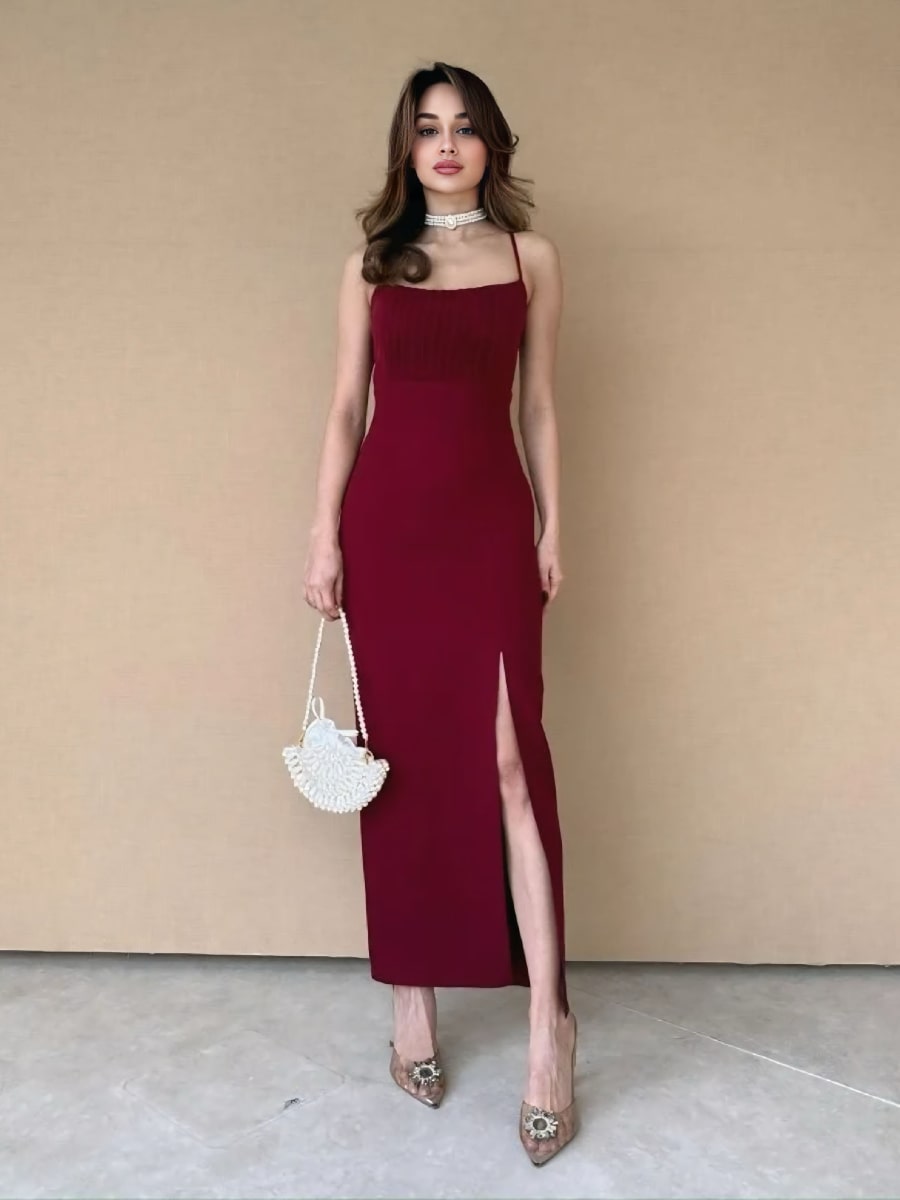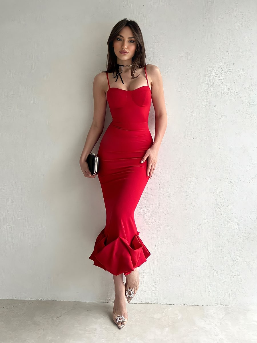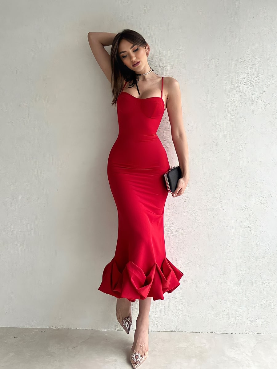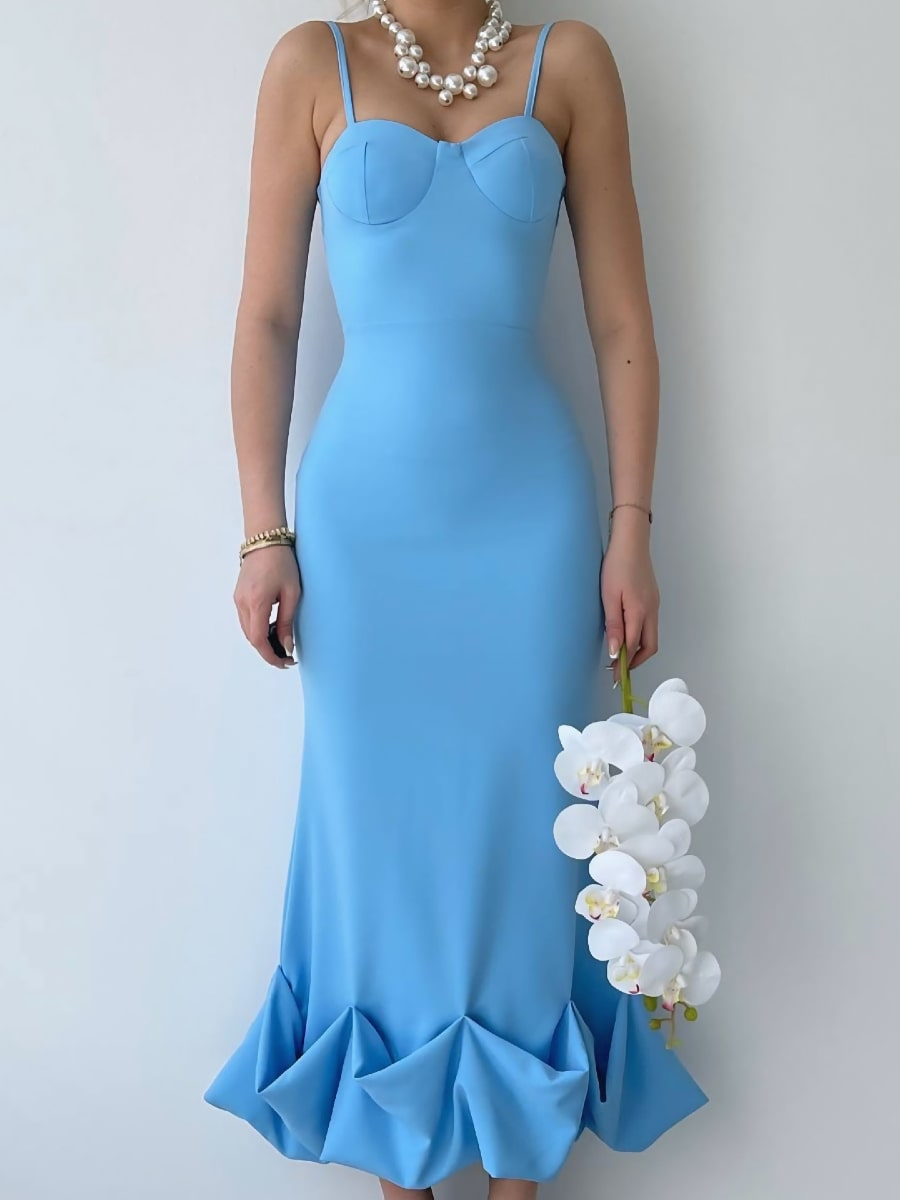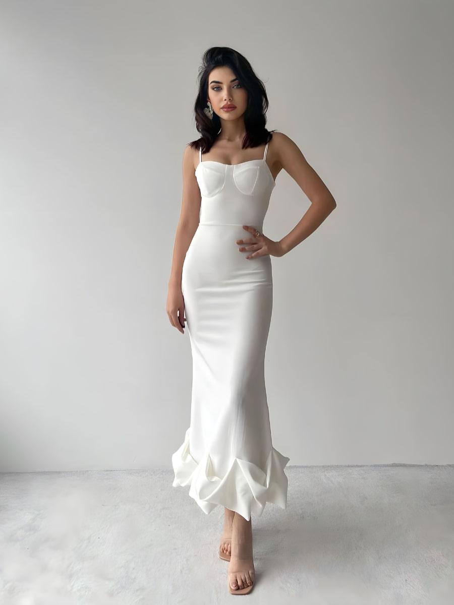Solid Ruffle Hem Bodycon Cami Dress