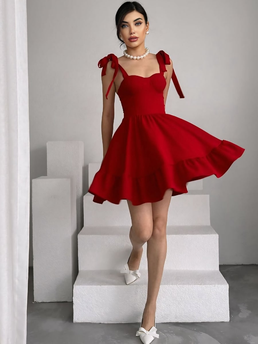 Solid Tie Shoulder Cami Dress