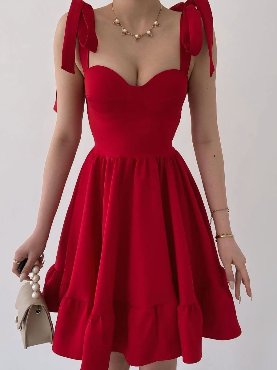 Tie Shoulder Solid Cami Dress