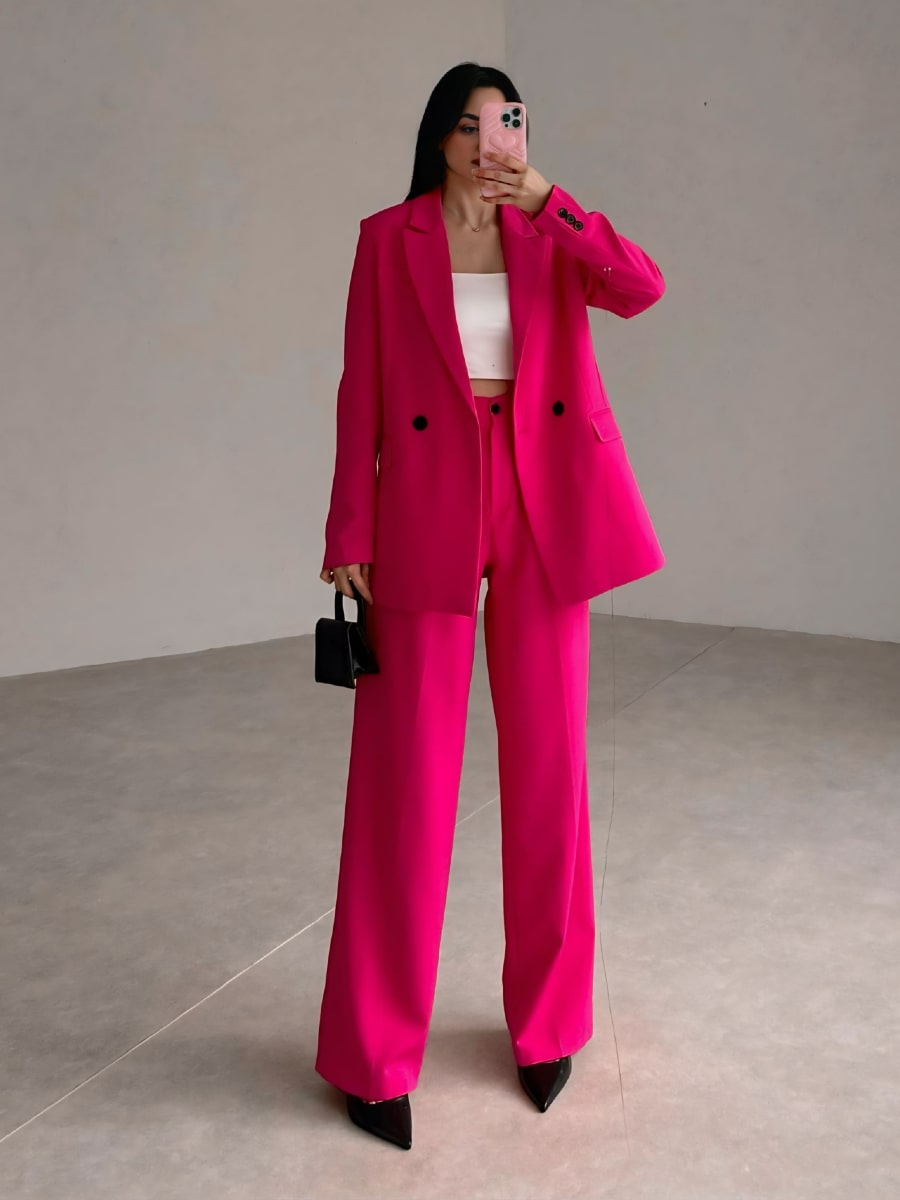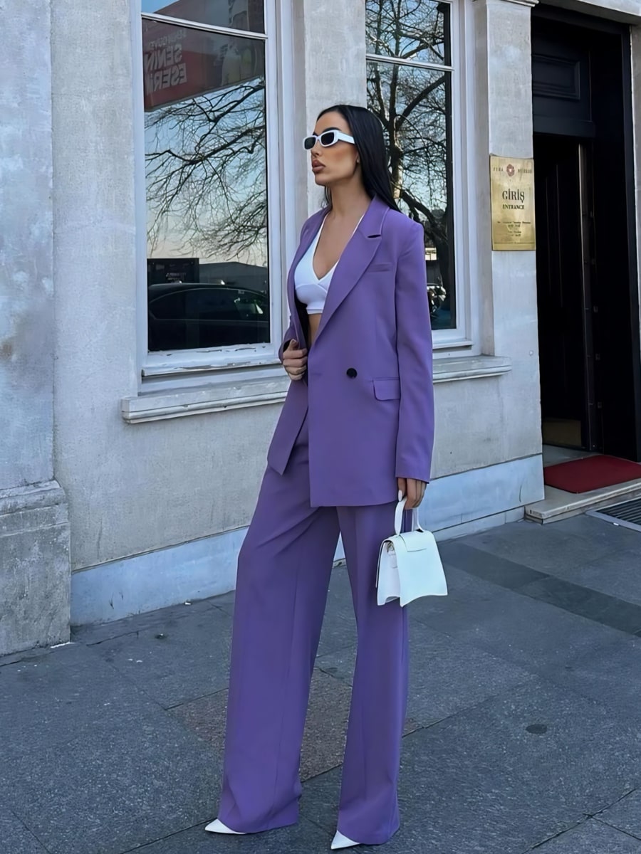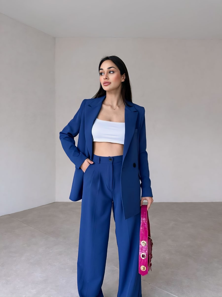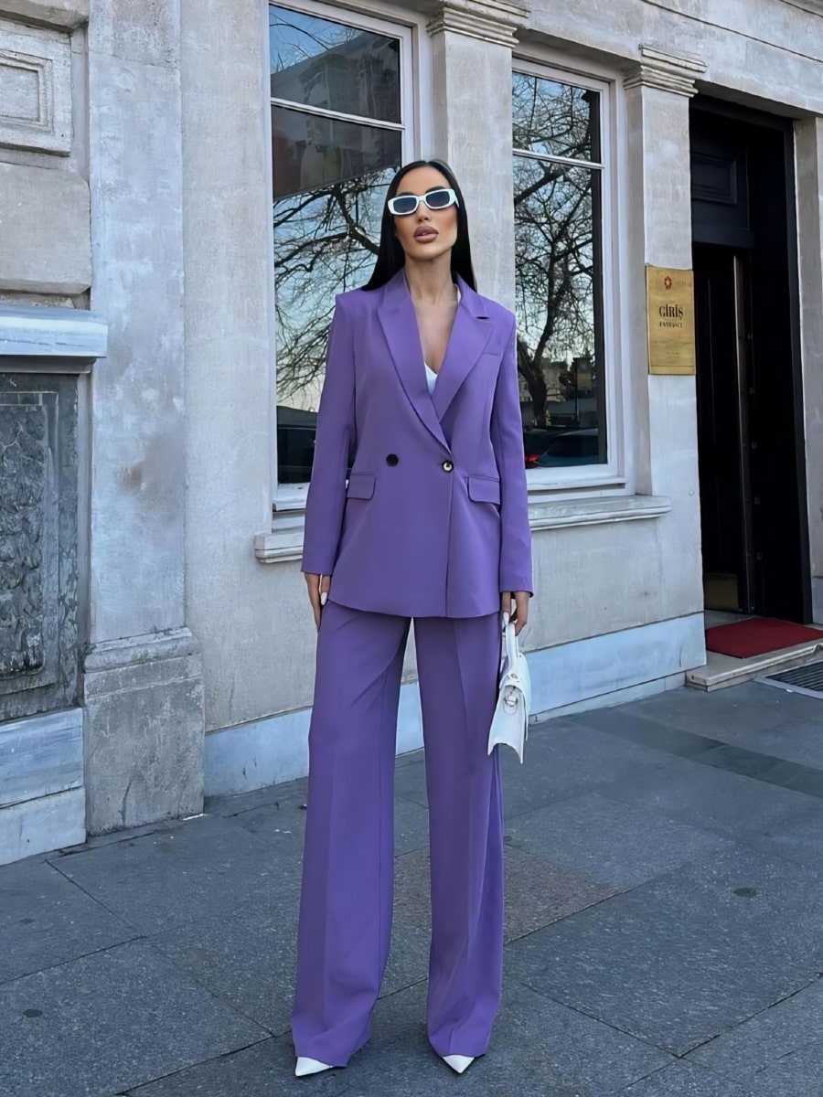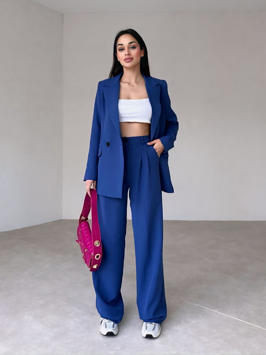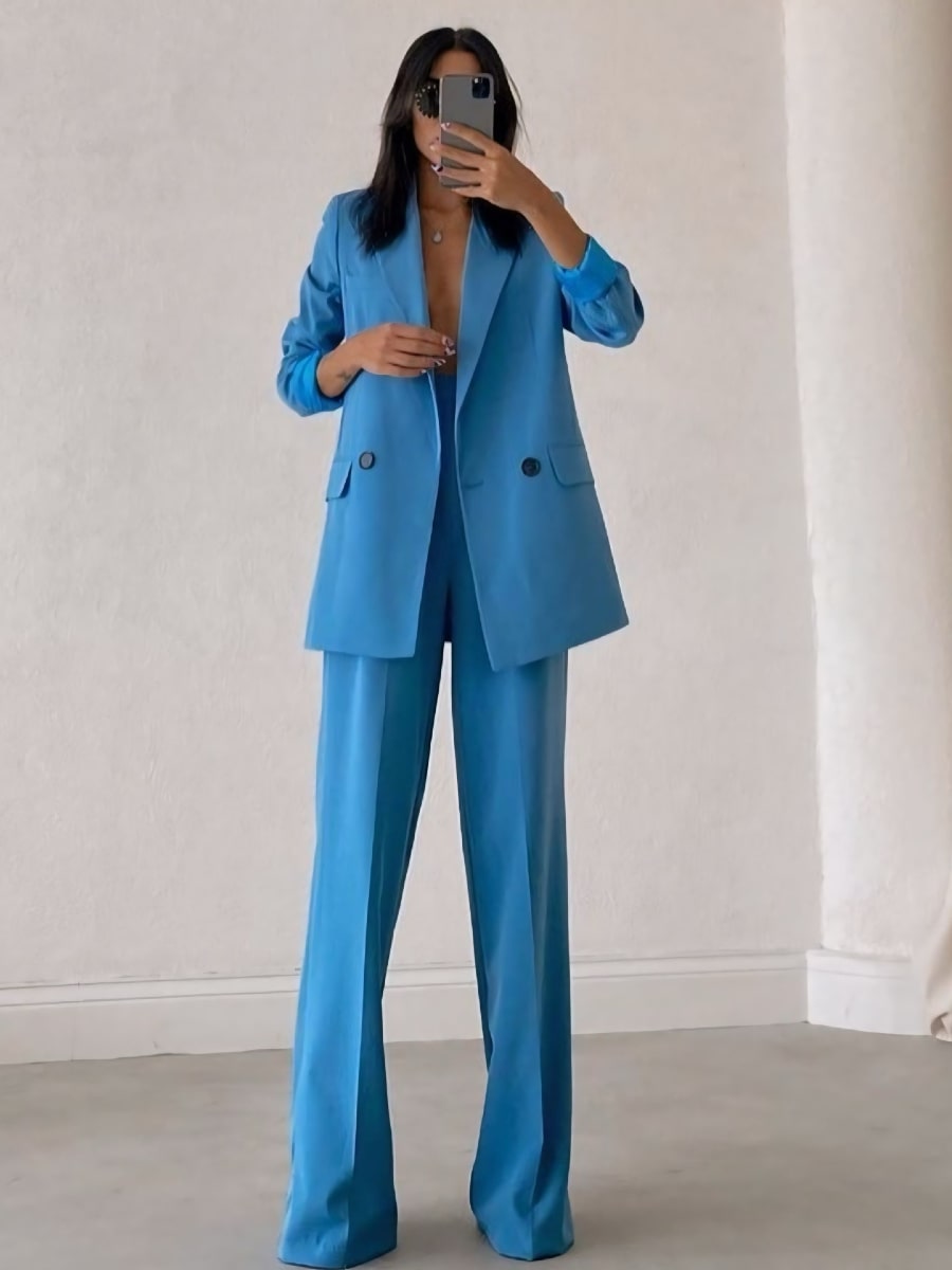 Solid Blazer With Suit Pants Set