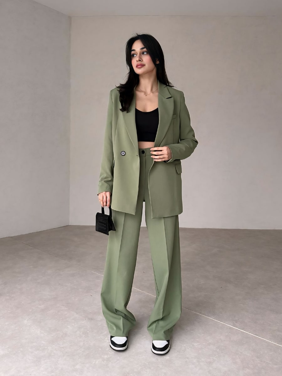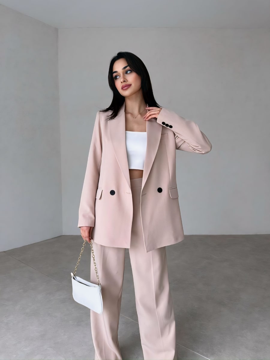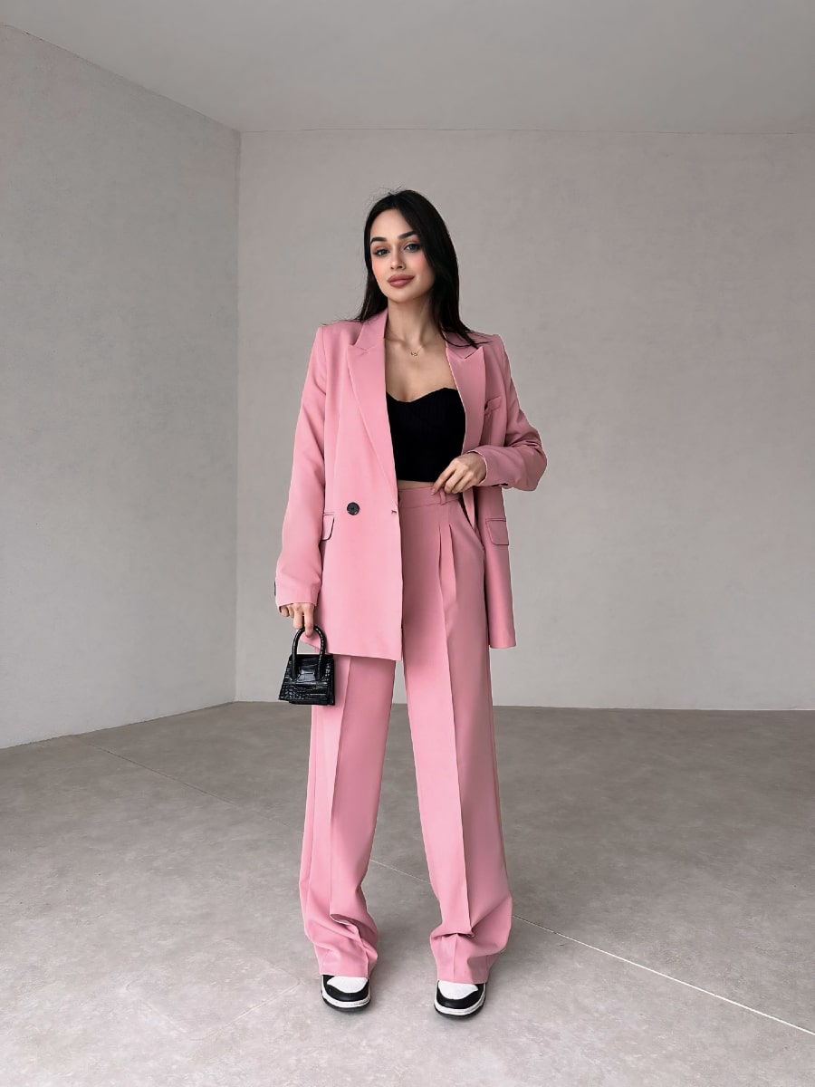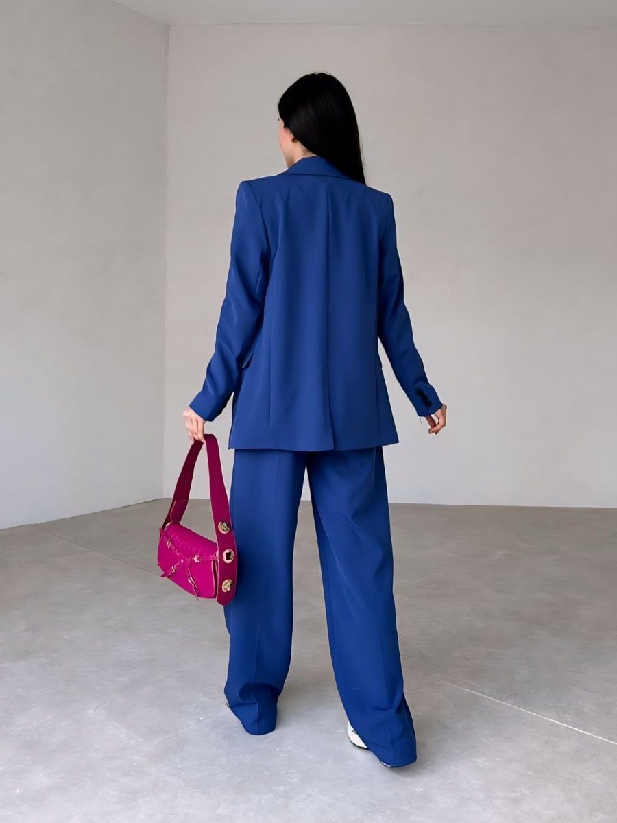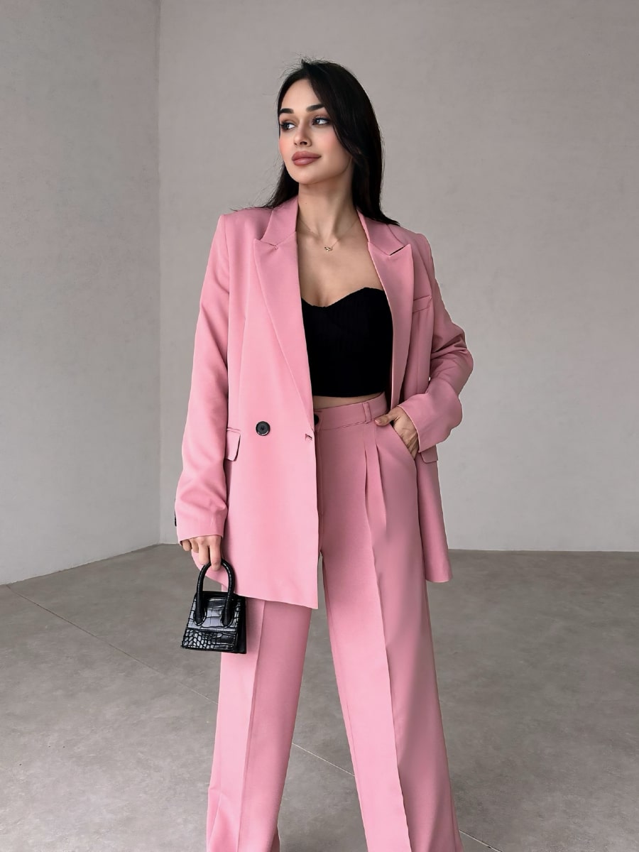 Solid Blazer With Suit Pants Set