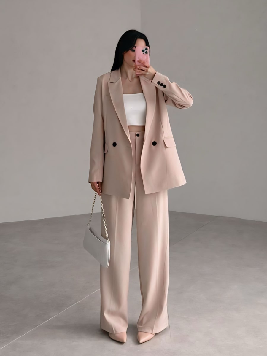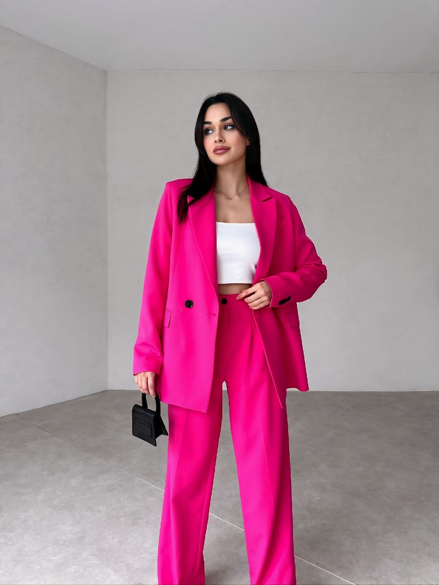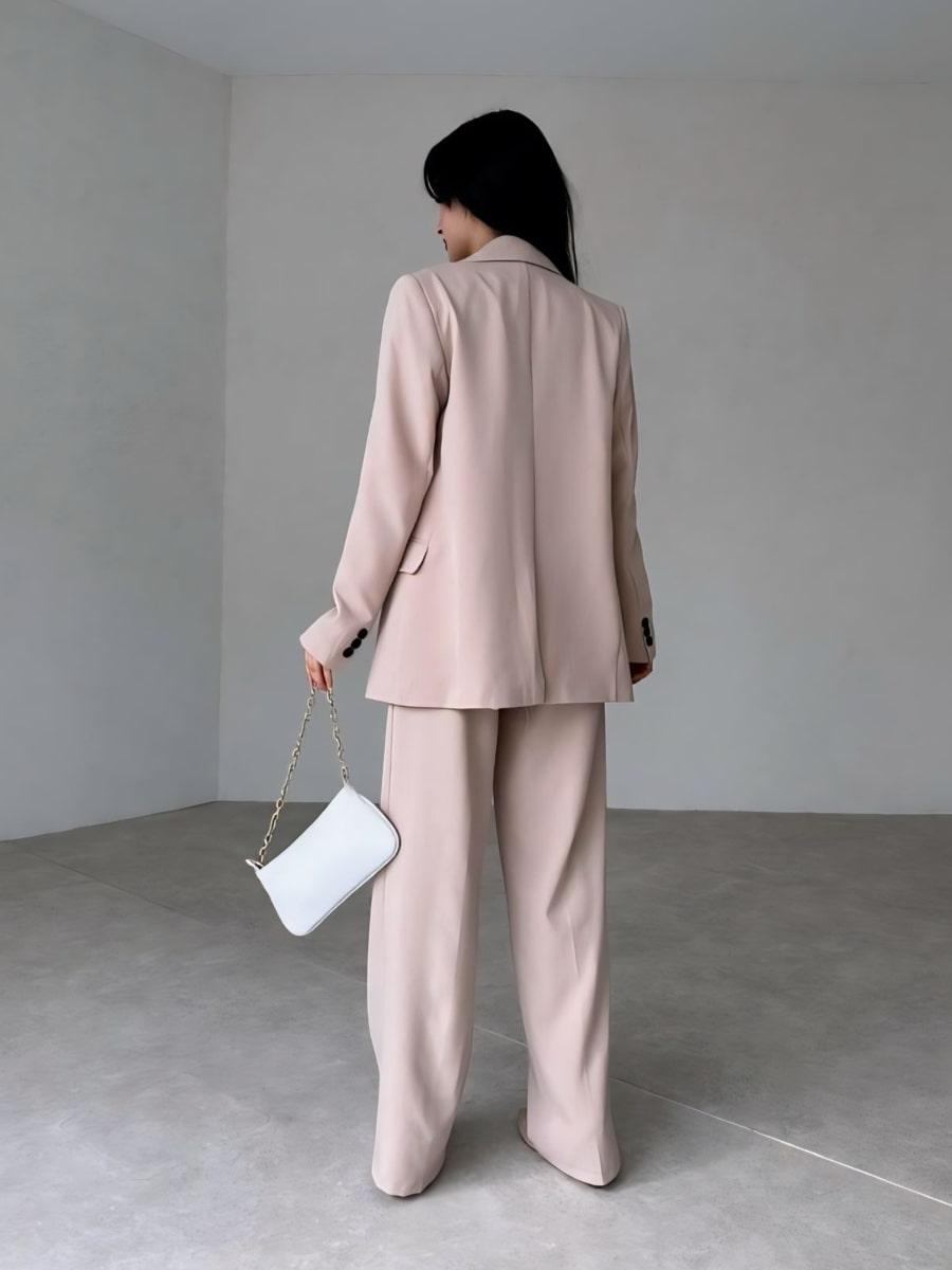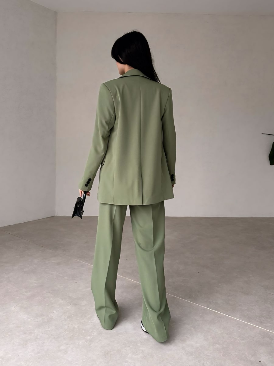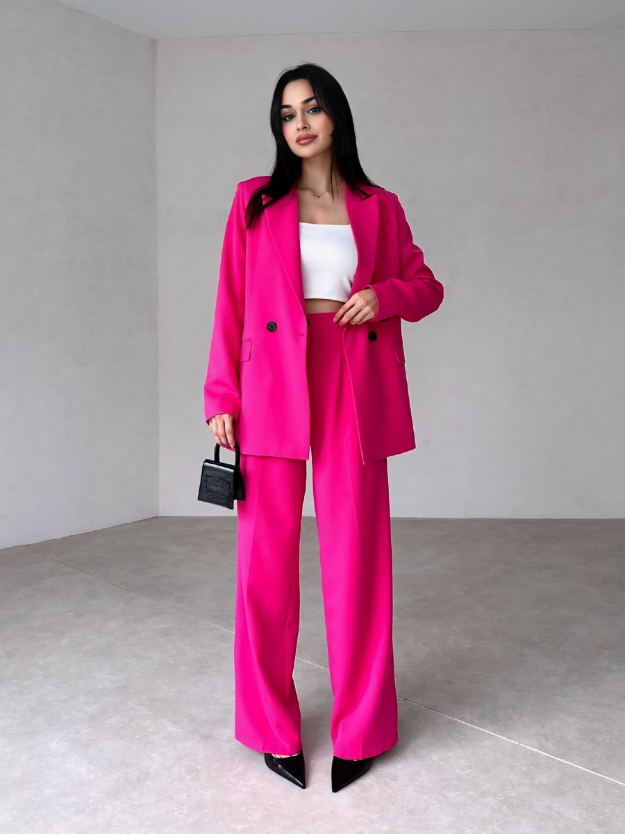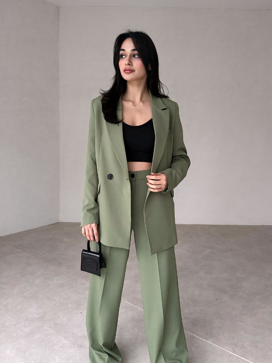 Solid Blazer With Suit Pants Set