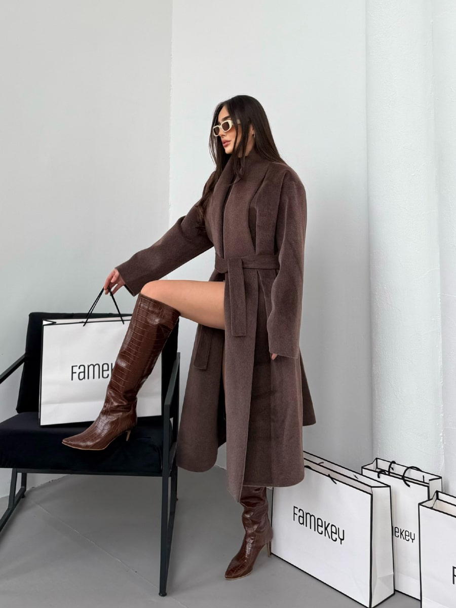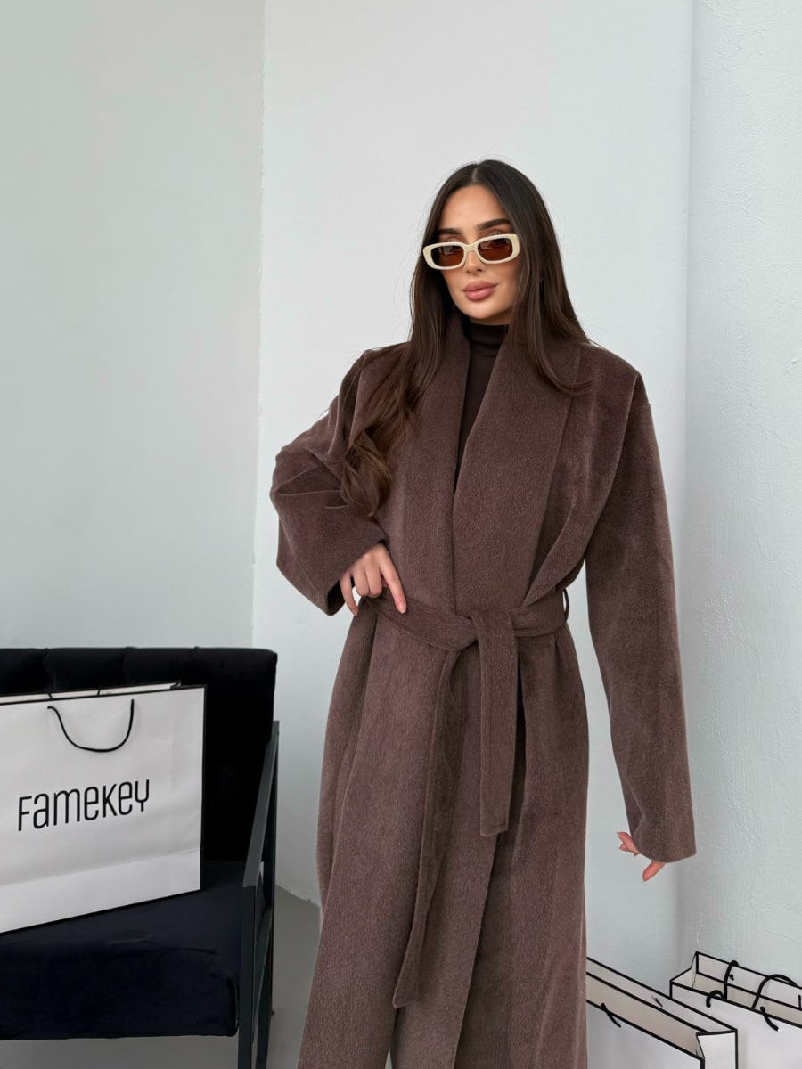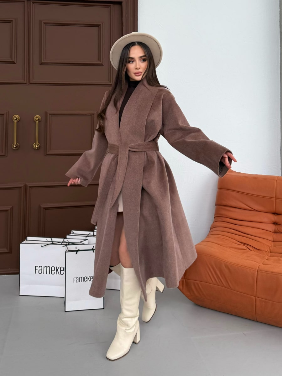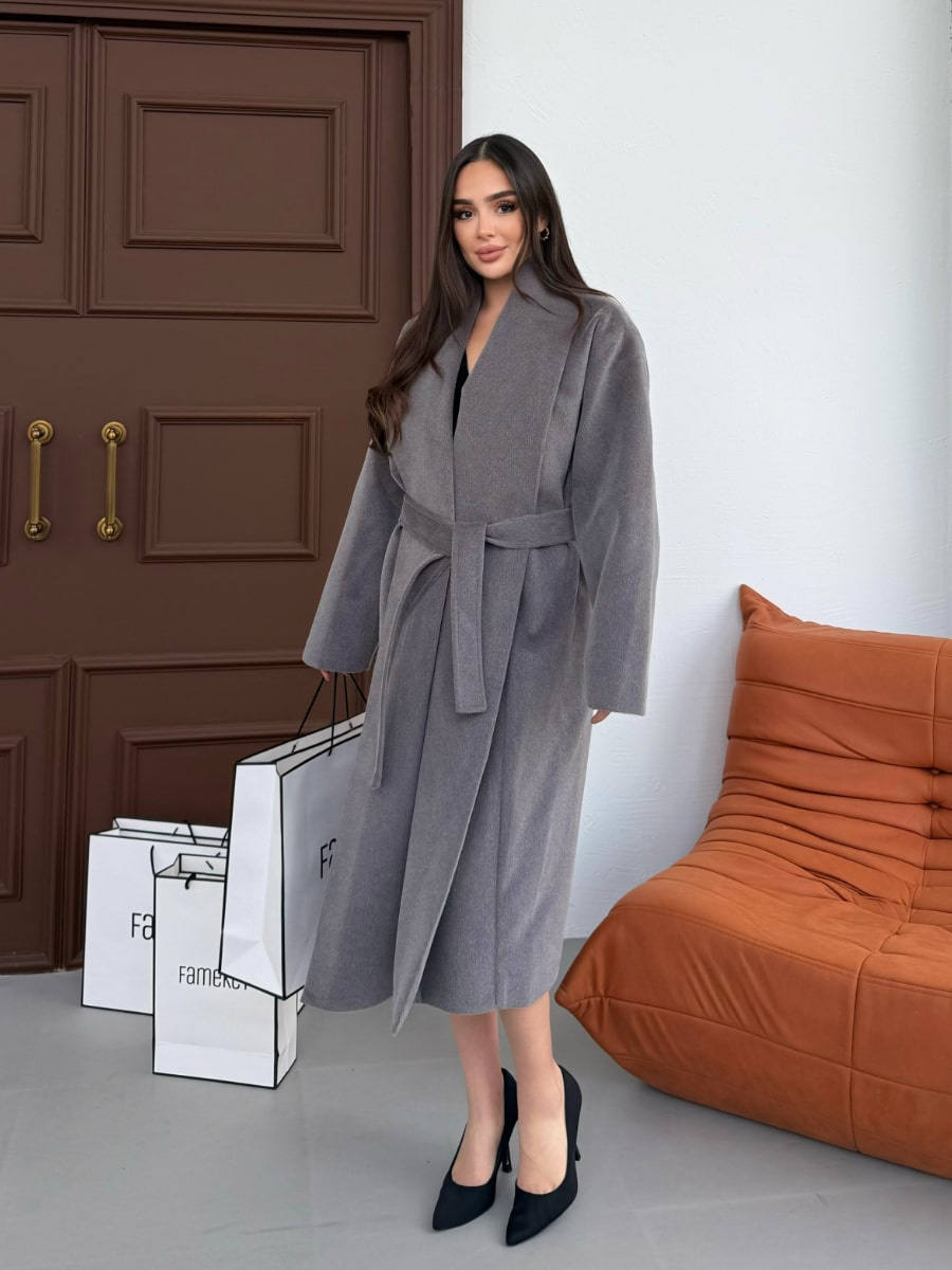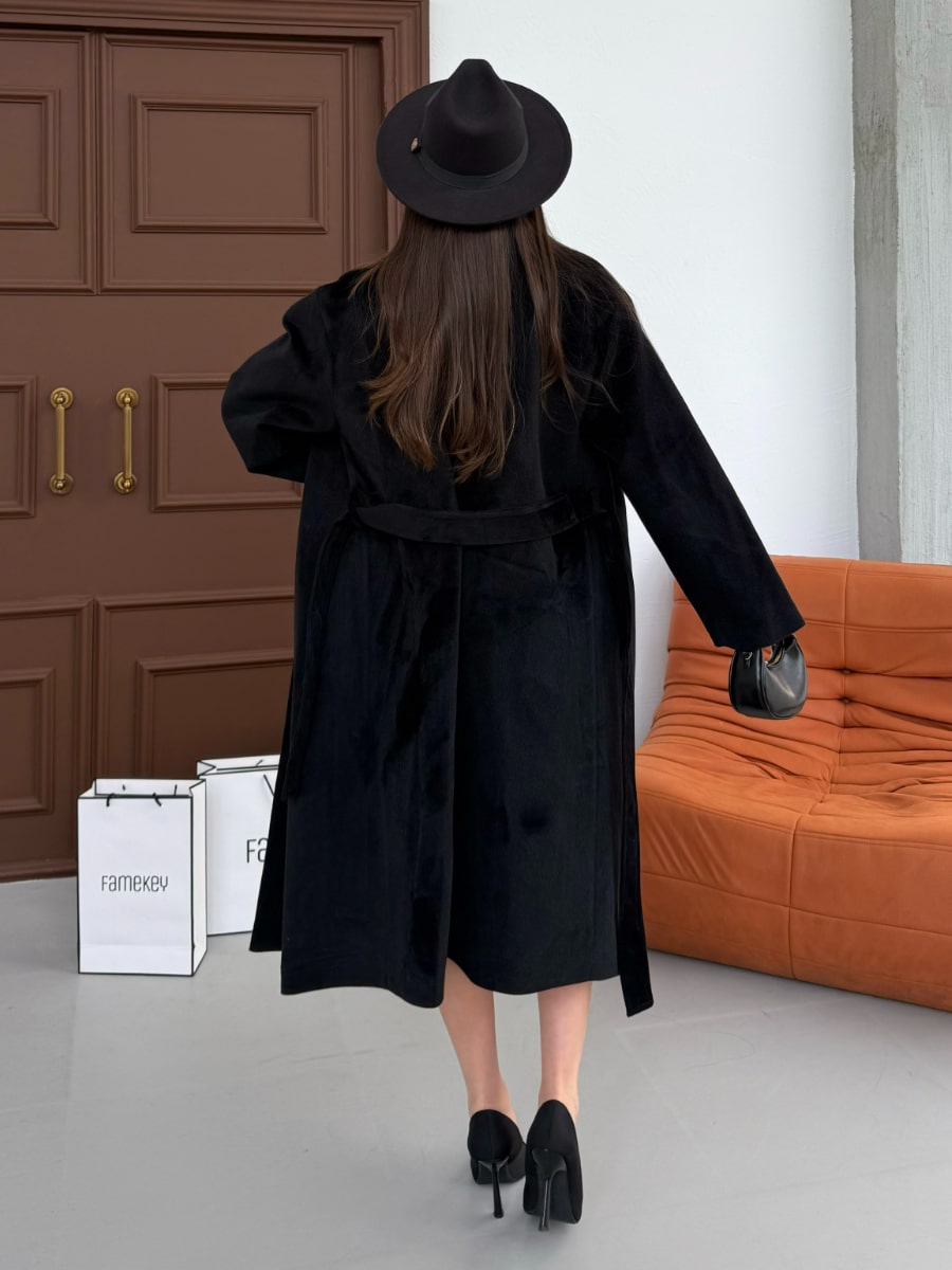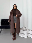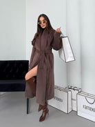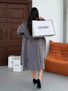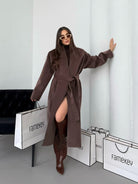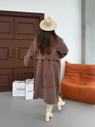 Solid Color Belted Elegant Loose Comfy Long Sleeve Coat