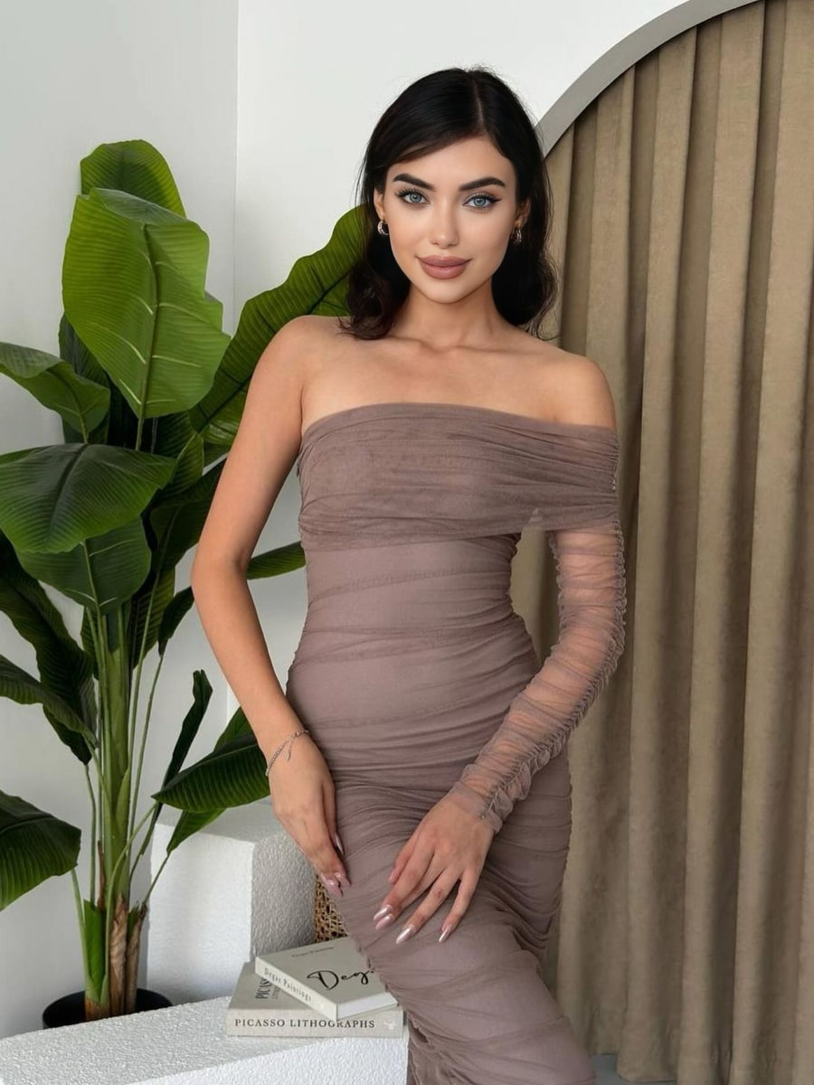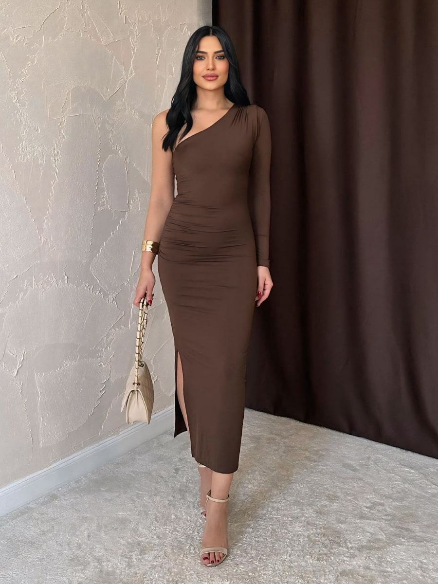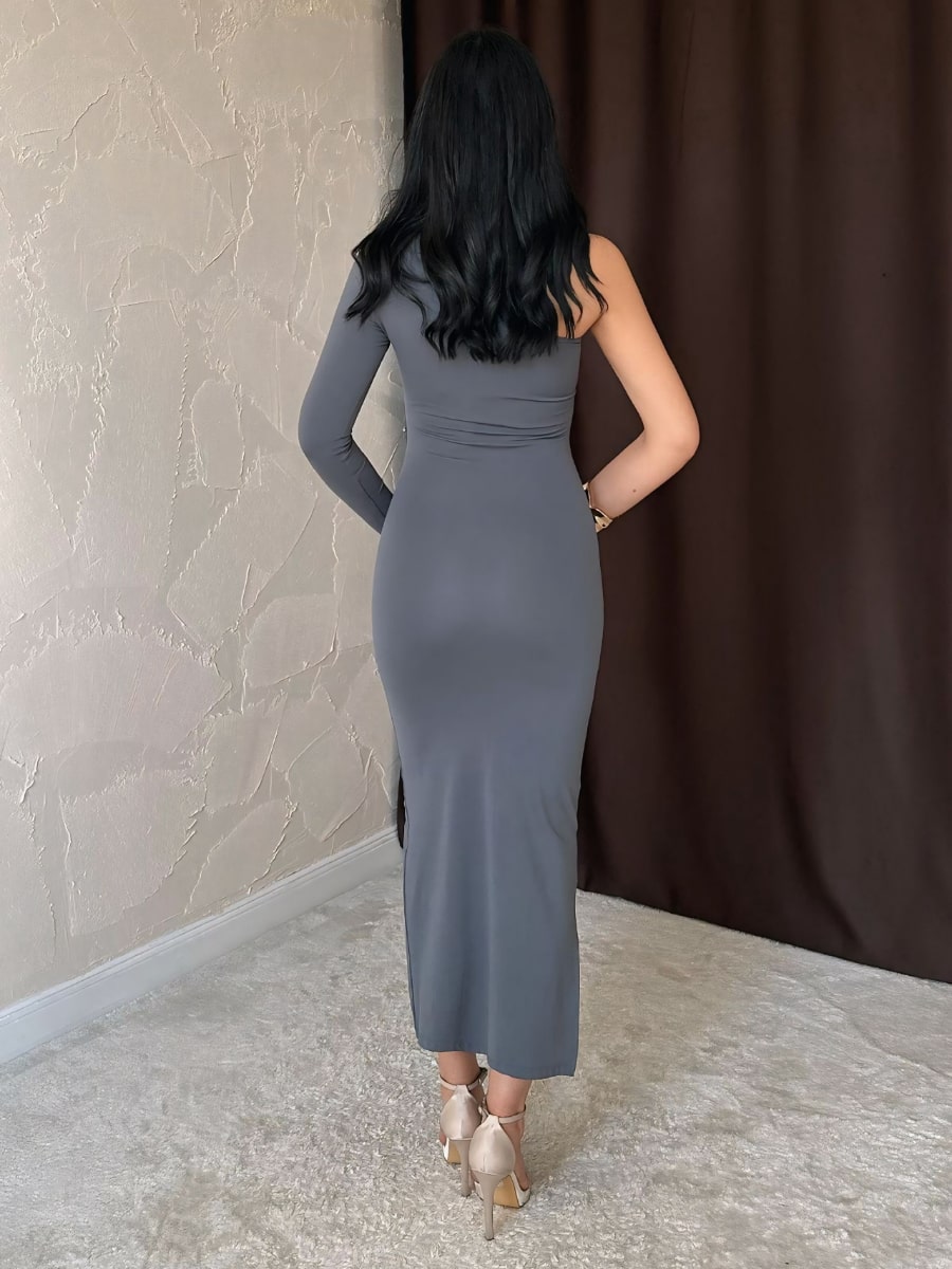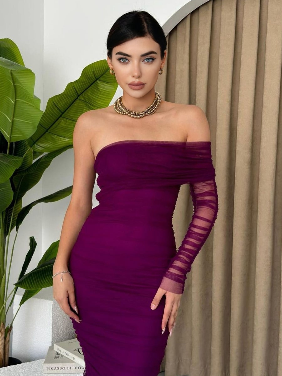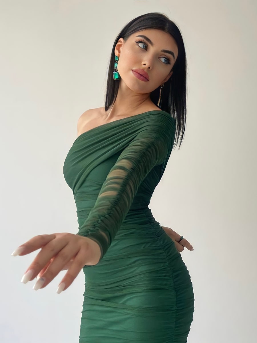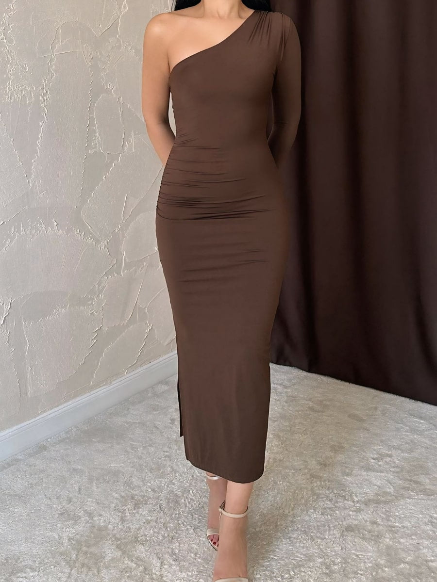 One Shoulder Ruched Mesh Dress