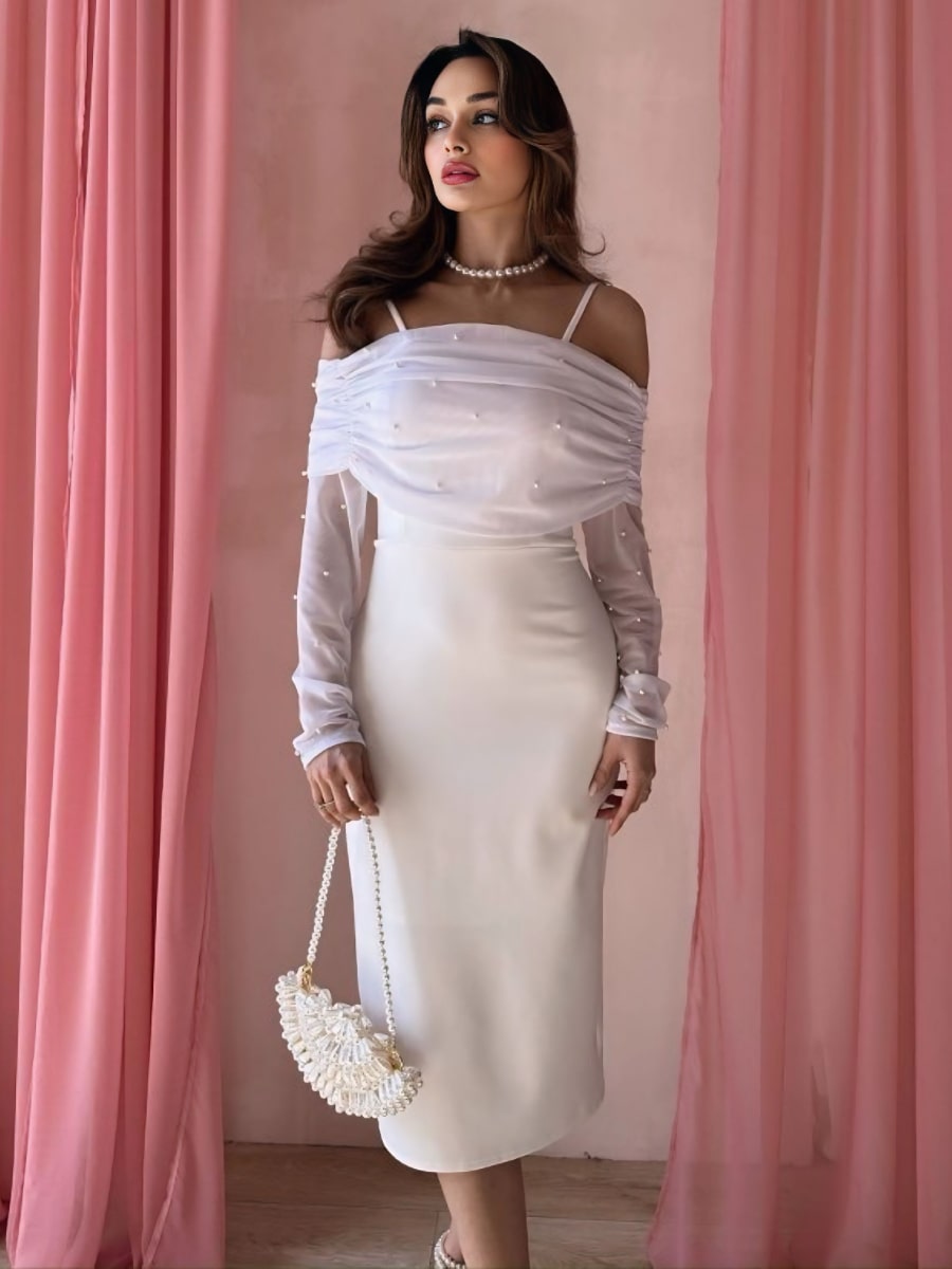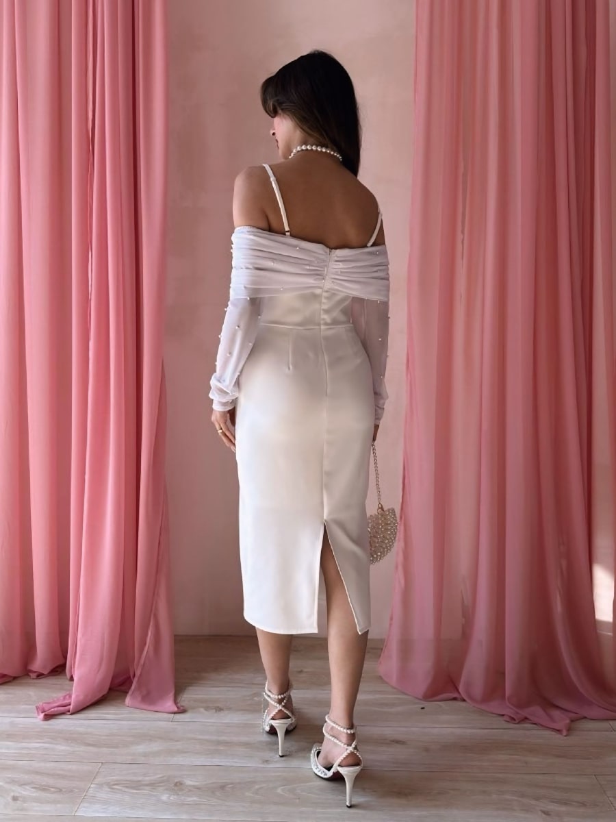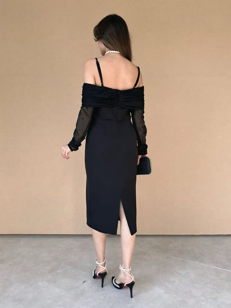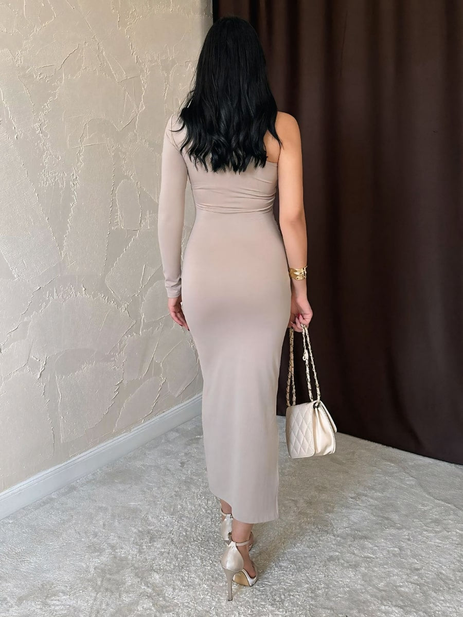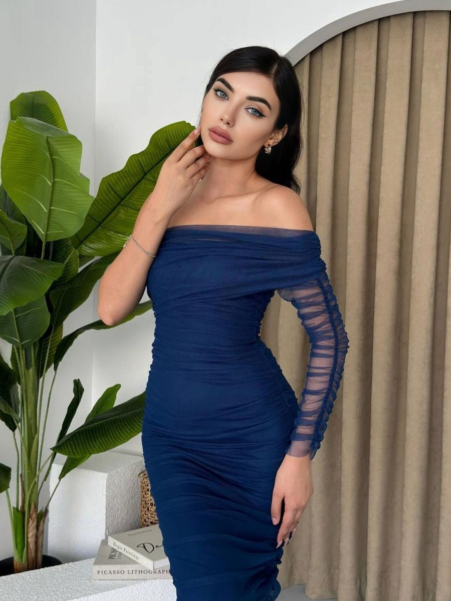 One Shoulder Ruched Mesh Dress