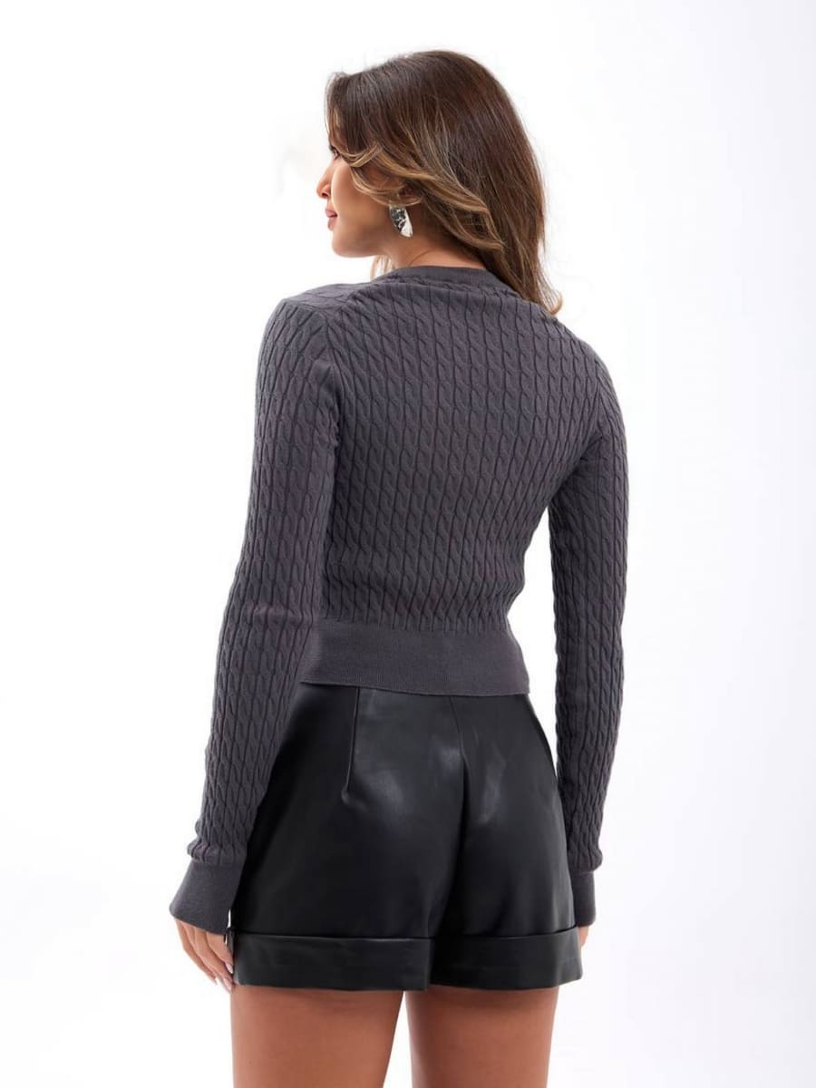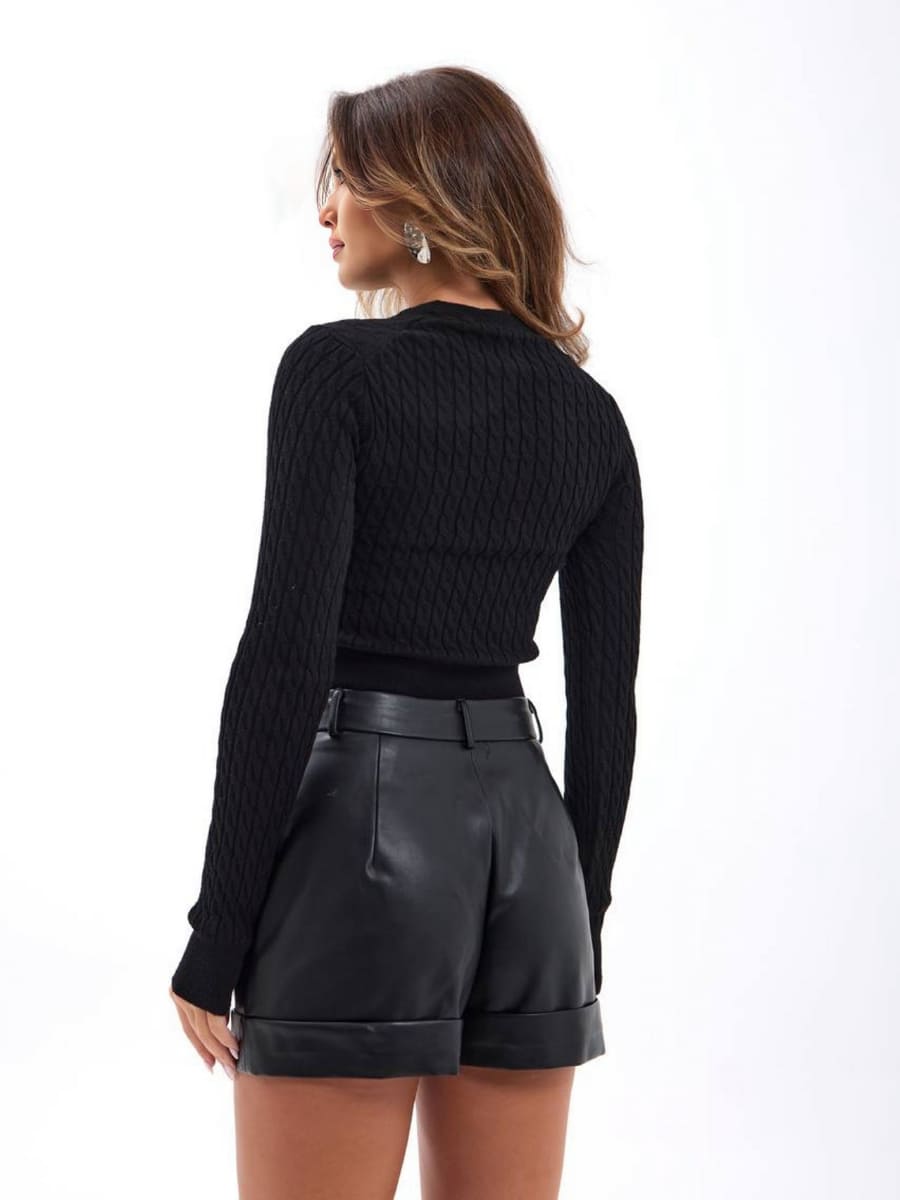 Casual Long Sleeve Fitted Cropped Cable Knit Sweater Basic Top