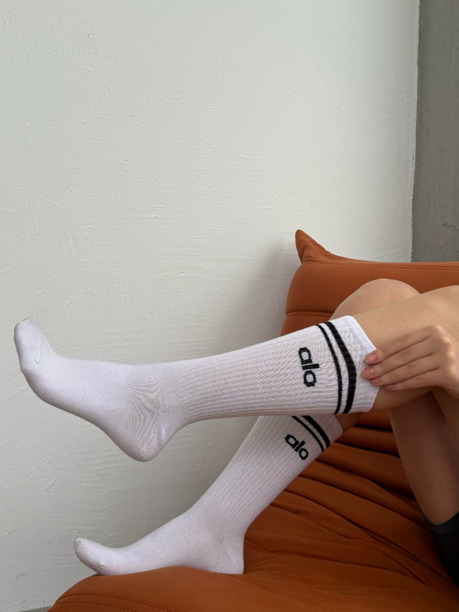 Black & White Contrasting Alo Letter Jacquard Mid Tube Socks