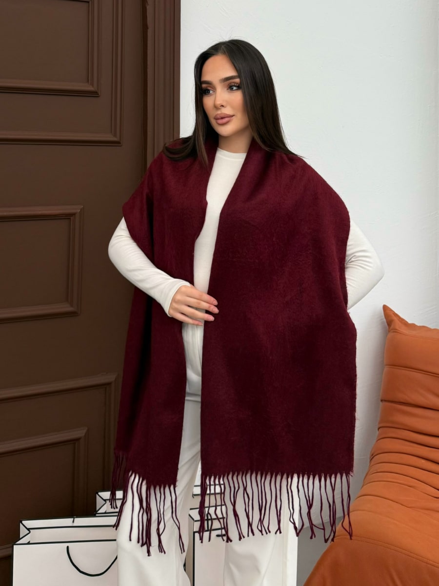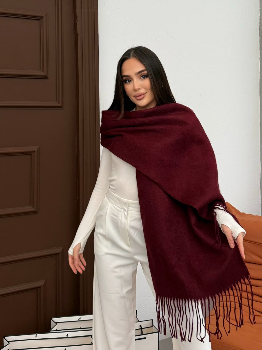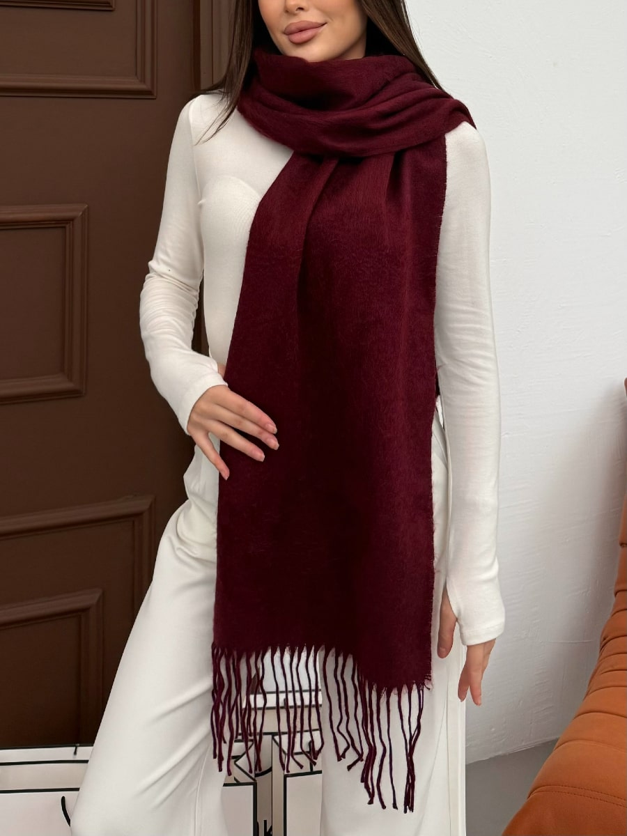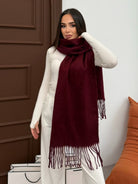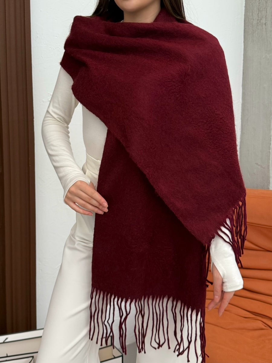 Cozy Fuzzy Solid Fringe Trim Oversized Shawl Scarf