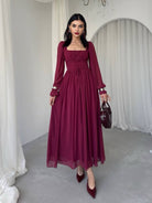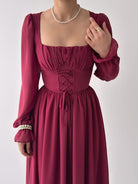 Solid Color Sweetheart Neck Long Sleeve Elegant High-End Waisted Dress