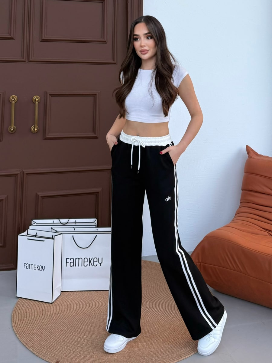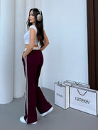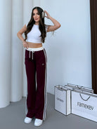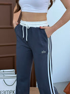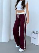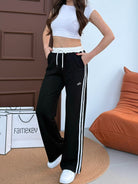 Striped Side Drawstring Waist Wide Leg Track Pants